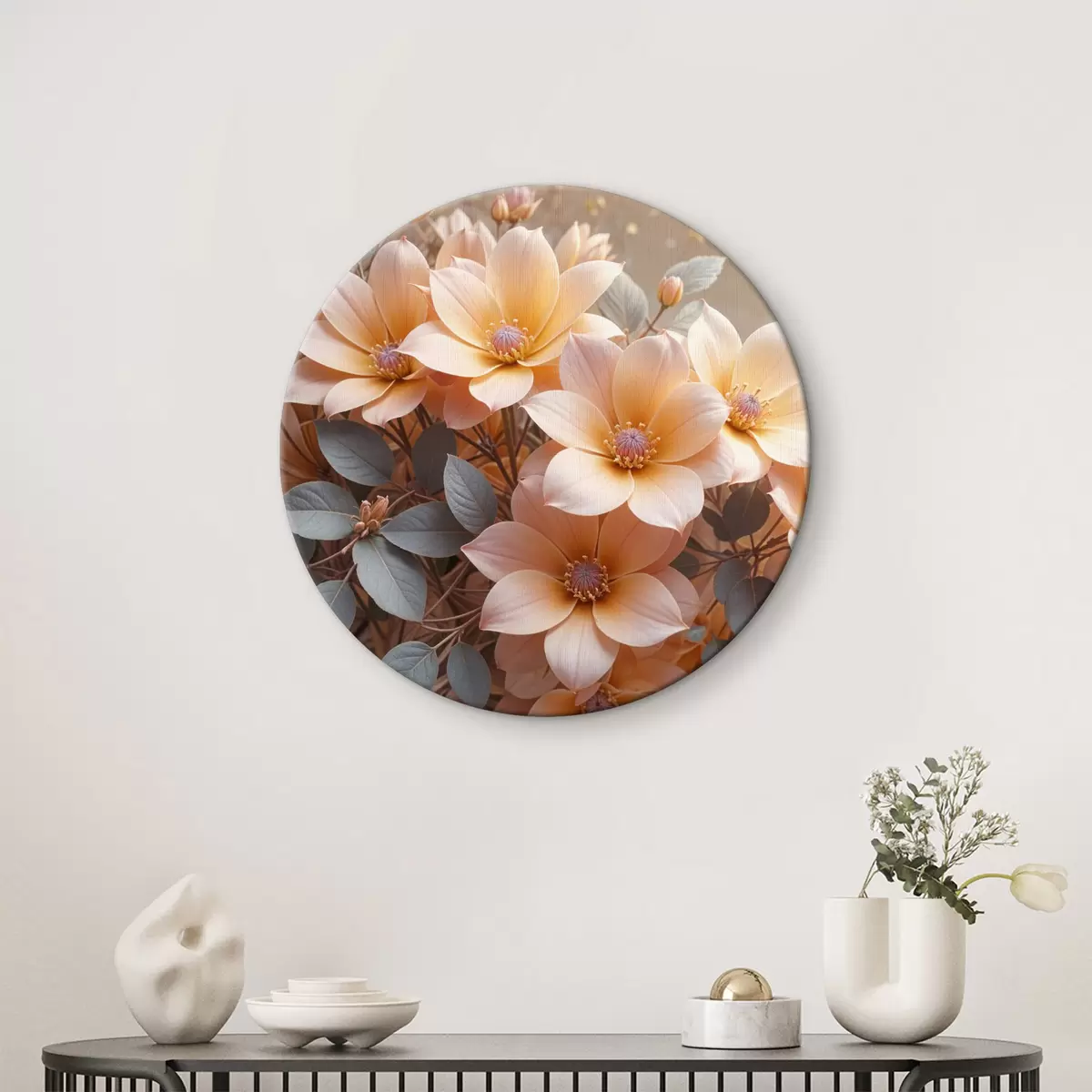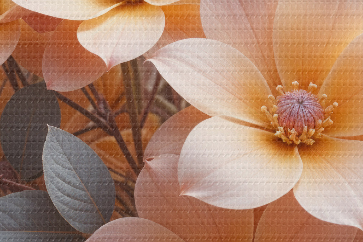 Obrázek Jemné květy jiřinek broskvové barvy v plném květu s měkkými okvětními lístky na rozmazaném pozadí Nr r40024