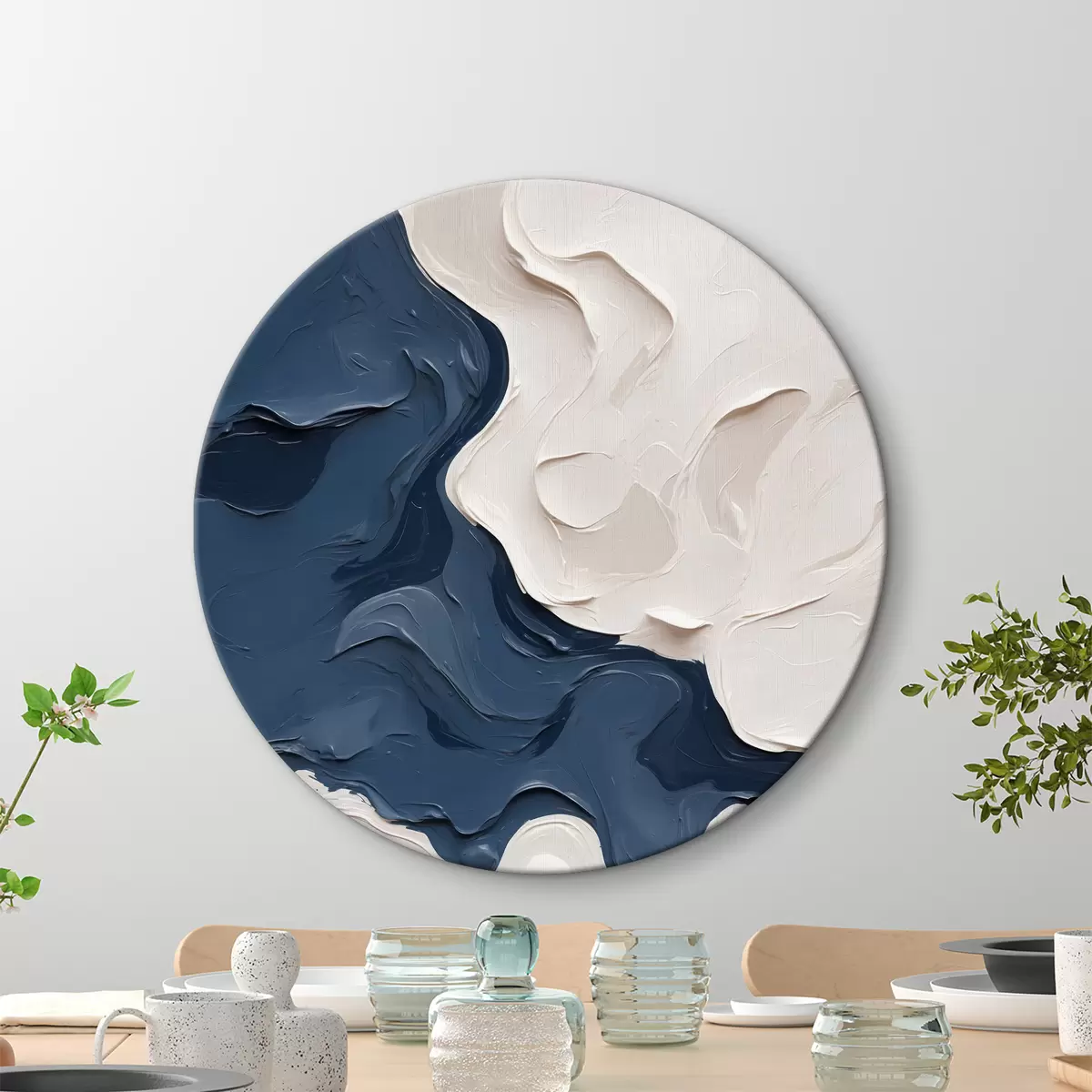 Obrázek Abstrakce s bílými a modrými olejovými barvami Nr r40058