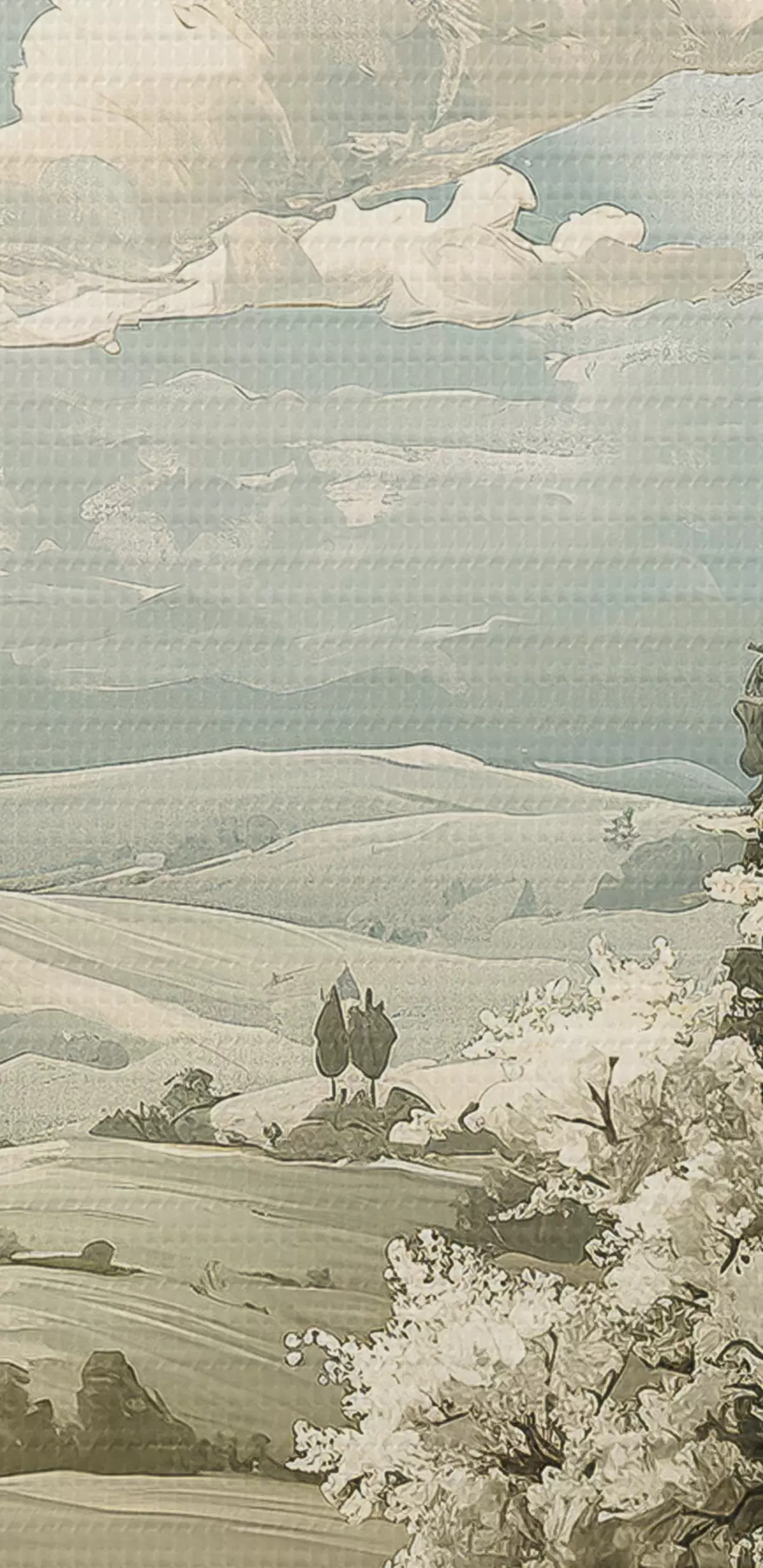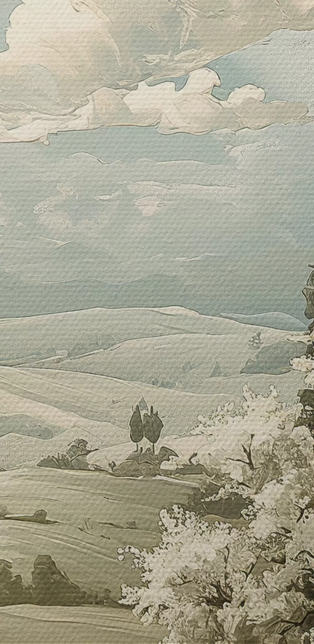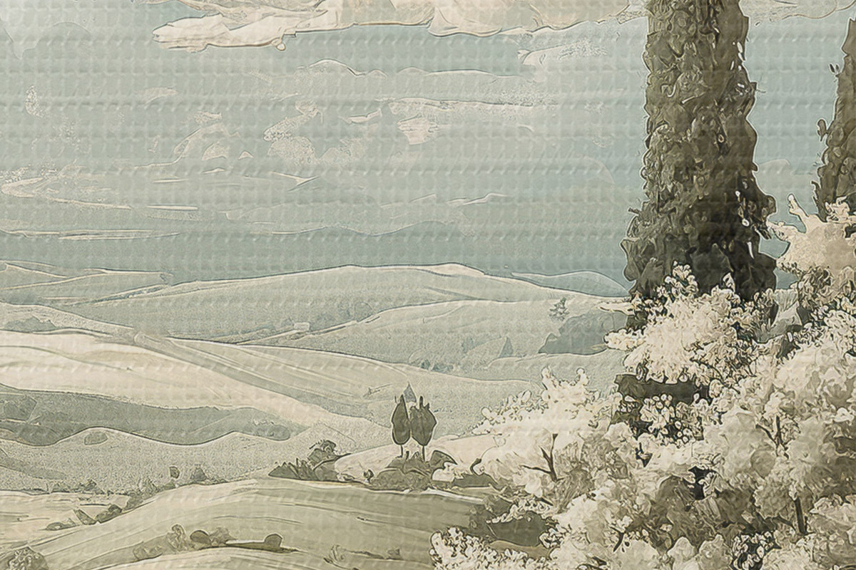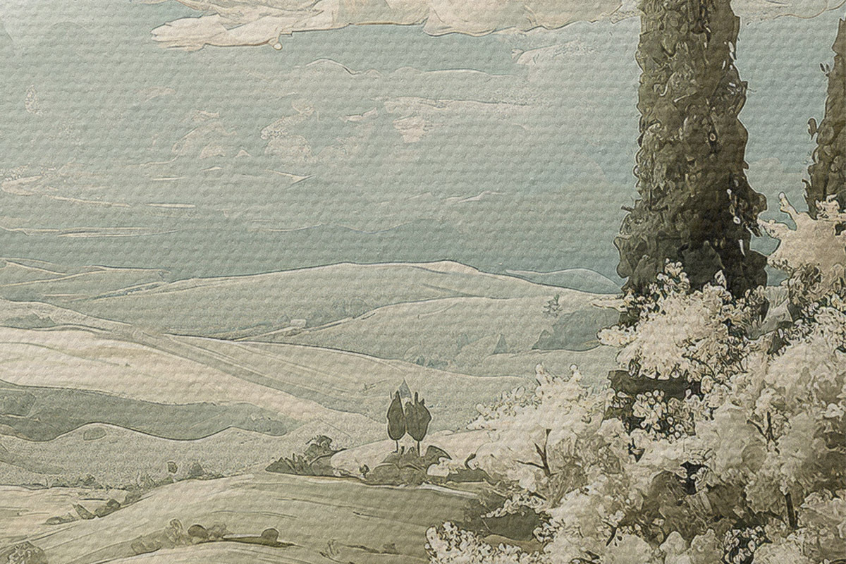 Obrázek Letní krajina, vintage styl, pastelové barvy, akrylová kresba, hrad Nr r40084