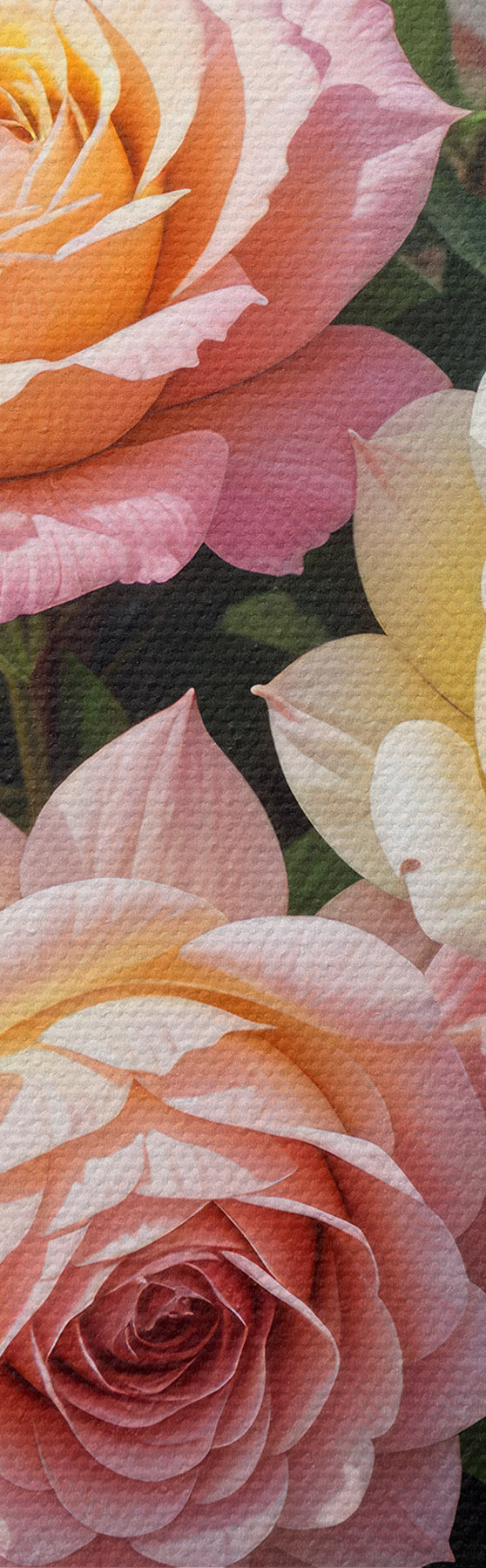 K objednání jsou k dispozici tři typy materiálu: Economic Canvas - hustý a odolný materiál pro digitální tisk, identický s malířským plátnem, voděodolný povrch, realistická reprodukce detailů, středně zrnitý materiál. Prémiové plátno - struktura připomíná malířské plátno (proplétané drobné nitě). Měkká, detailní reprodukce obrazu na matném povrchu. Eco-Premium - vysoce kvalitní tkanina ze 100% bavlny. Díky přírodním bavlněným vláknům je materiál trvanlivý a odolný proti opotřebení. Vynikající reprodukce barev a detailů.