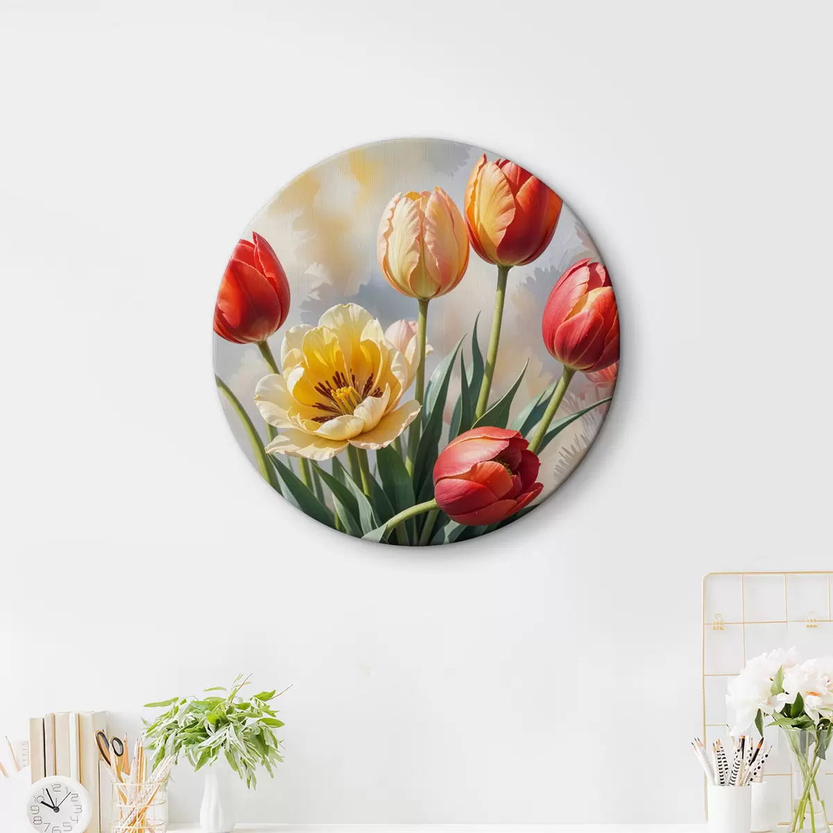 Obrázek Barevné tulipány v různých odstínech červené, oranžové a žluté na světlém pozadí Nr r40167