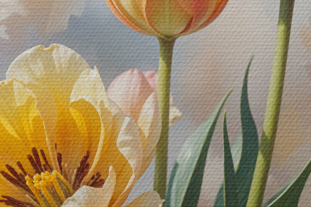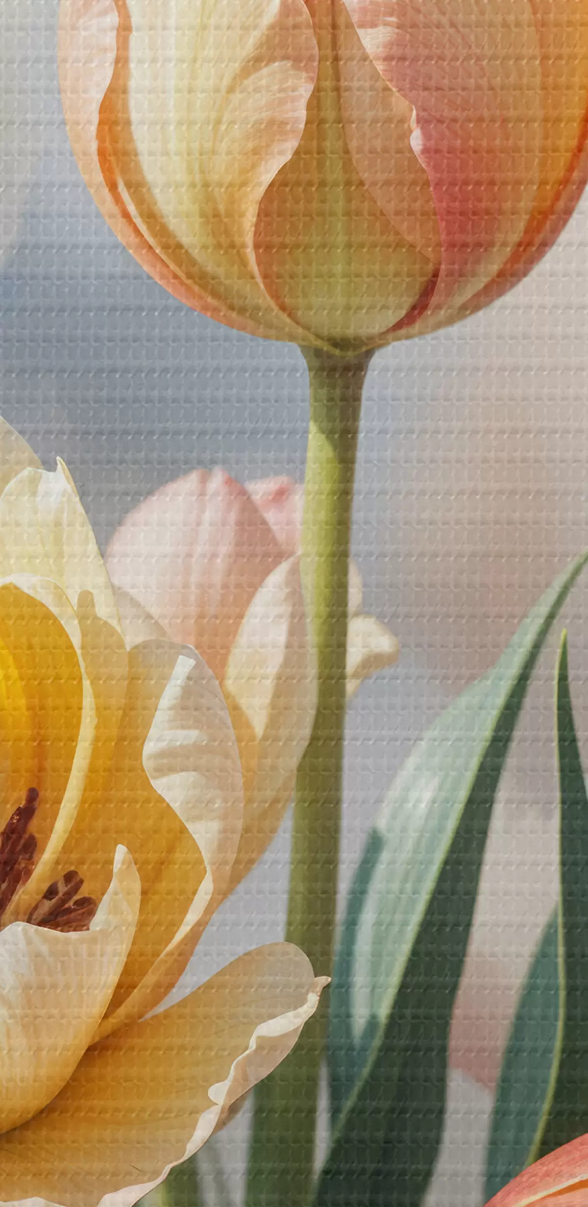 K objednání jsou k dispozici tři typy materiálu: Economic Canvas - hustý a odolný materiál pro digitální tisk, identický s malířským plátnem, voděodolný povrch, realistická reprodukce detailů, středně zrnitý materiál. Prémiové plátno - struktura připomíná malířské plátno (proplétané drobné nitě). Měkká, detailní reprodukce obrazu na matném povrchu. Eco-Premium - vysoce kvalitní tkanina ze 100% bavlny. Díky přírodním bavlněným vláknům je materiál trvanlivý a odolný proti opotřebení. Vynikající reprodukce barev a detailů.