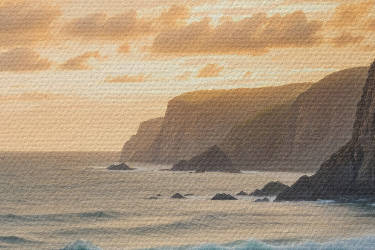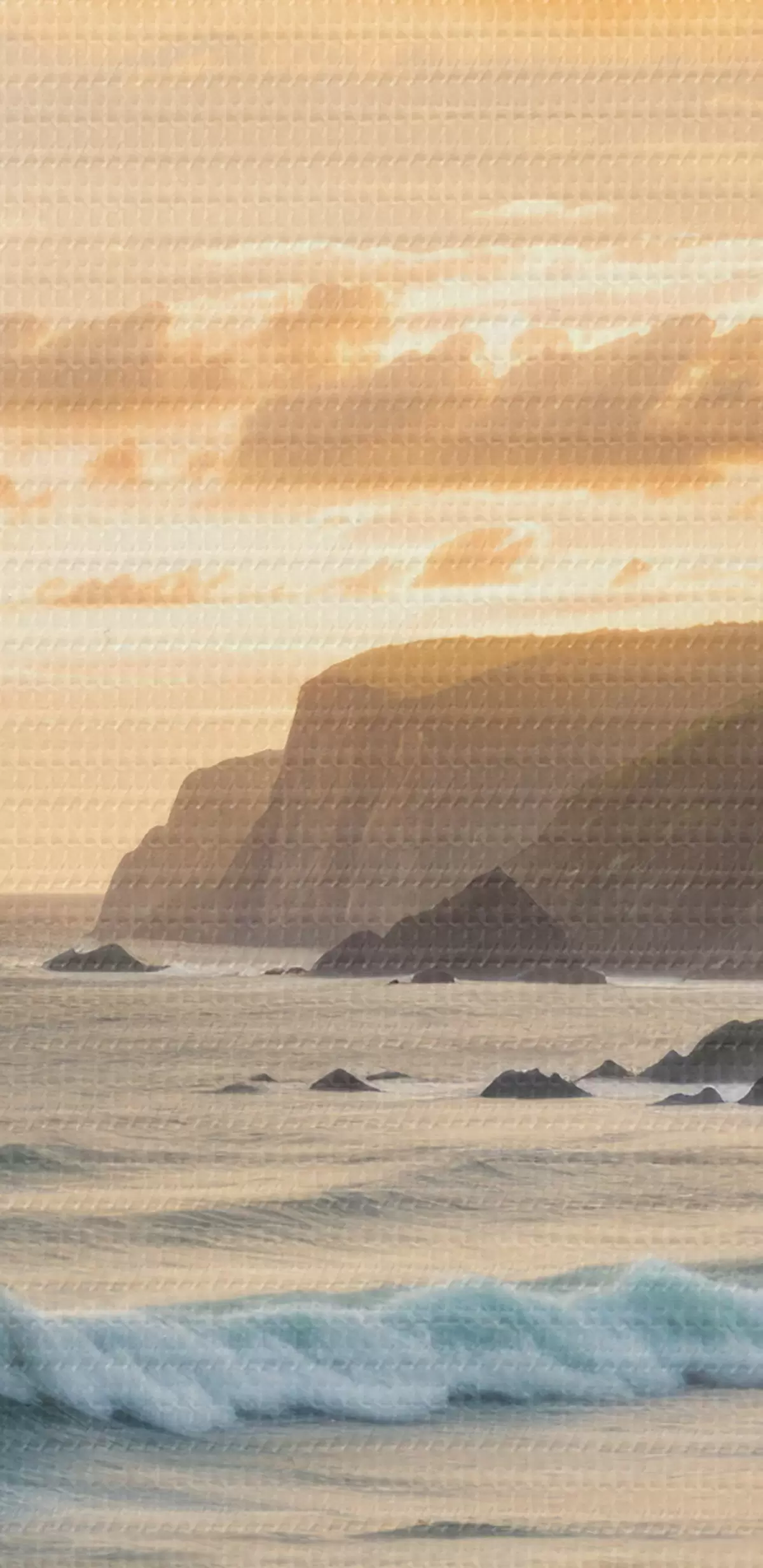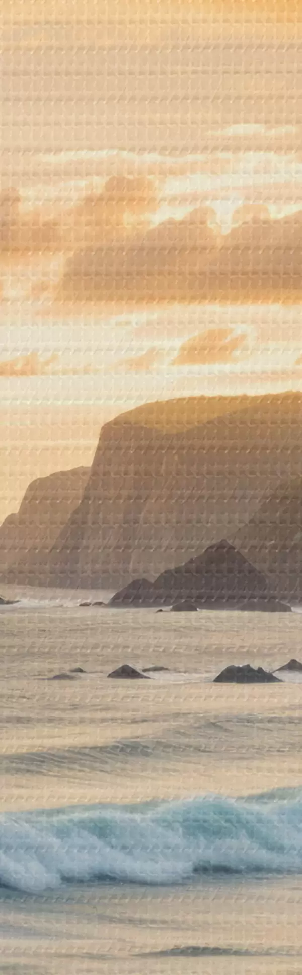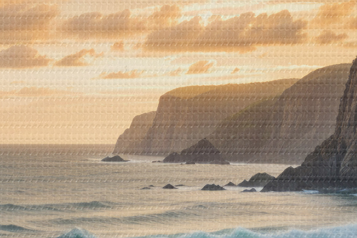 Obrázek Malebná pobřežní krajina s dramatickými útesy, burácejícími vlnami a barevnou oblohou při západu slunce Nr r40176