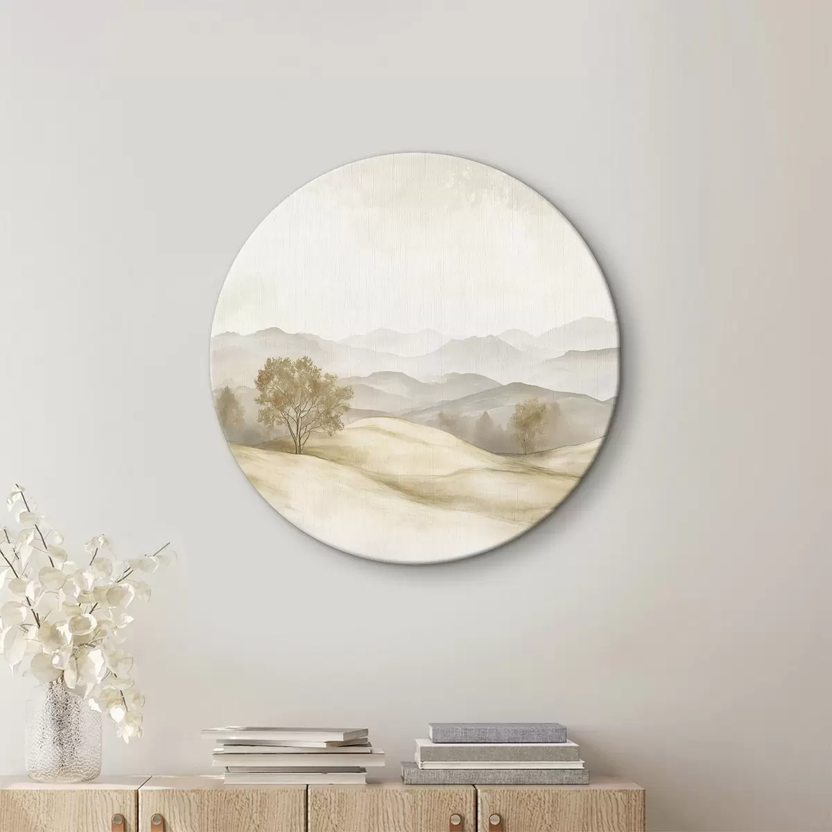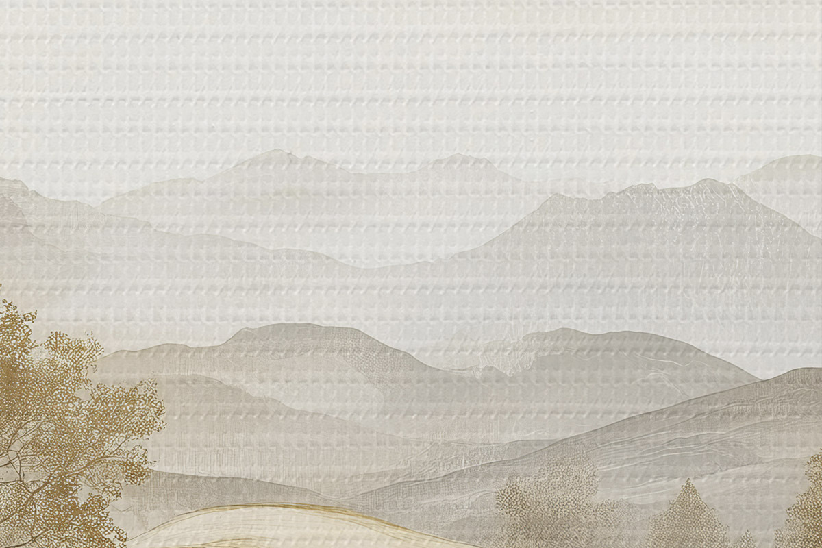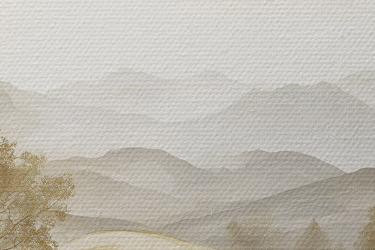 Obrázek Přírodní krajina v béžové paletě barev, louka, stromy, kresba akvarelem Nr r40231
