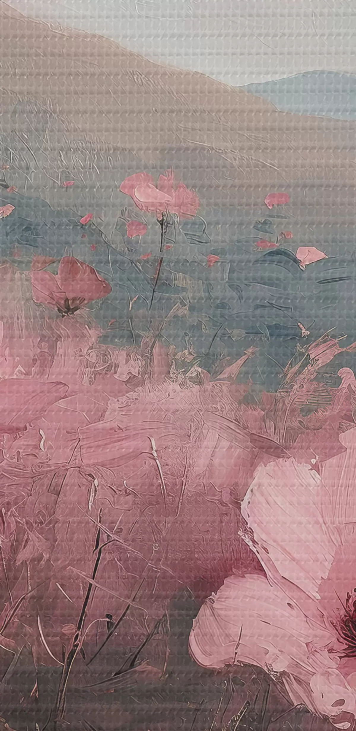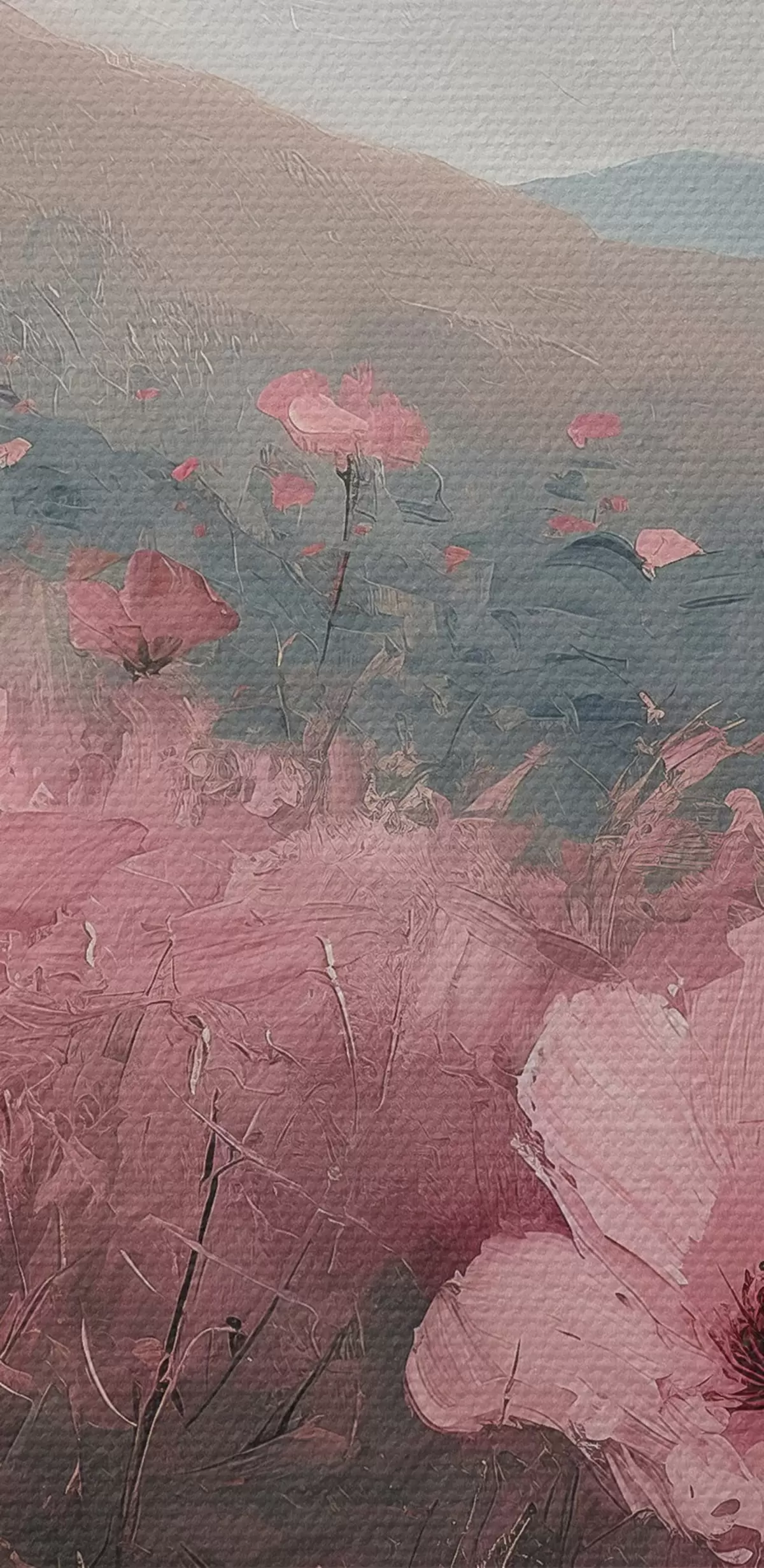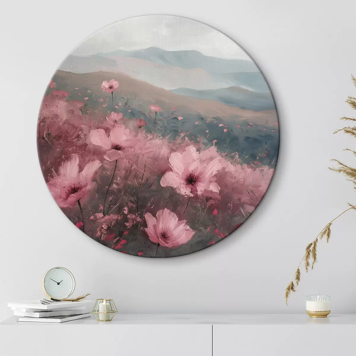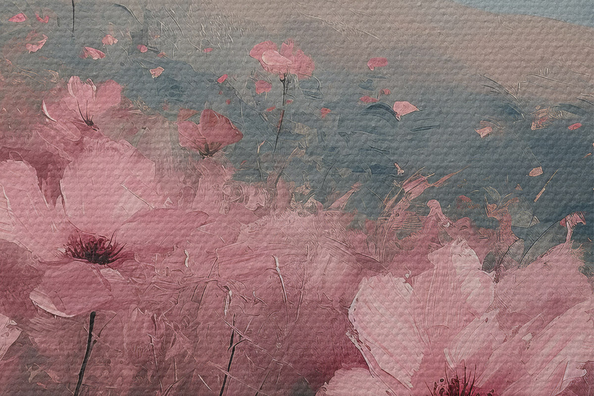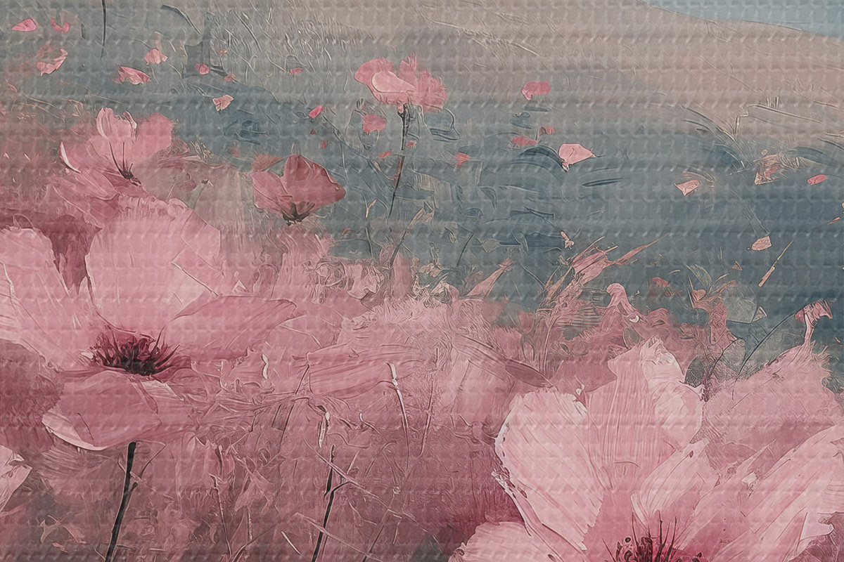Obrázek Růžové květy na louce, přírodní krajina, hory, olejomalba, živé tahy štětcem Nr r40233