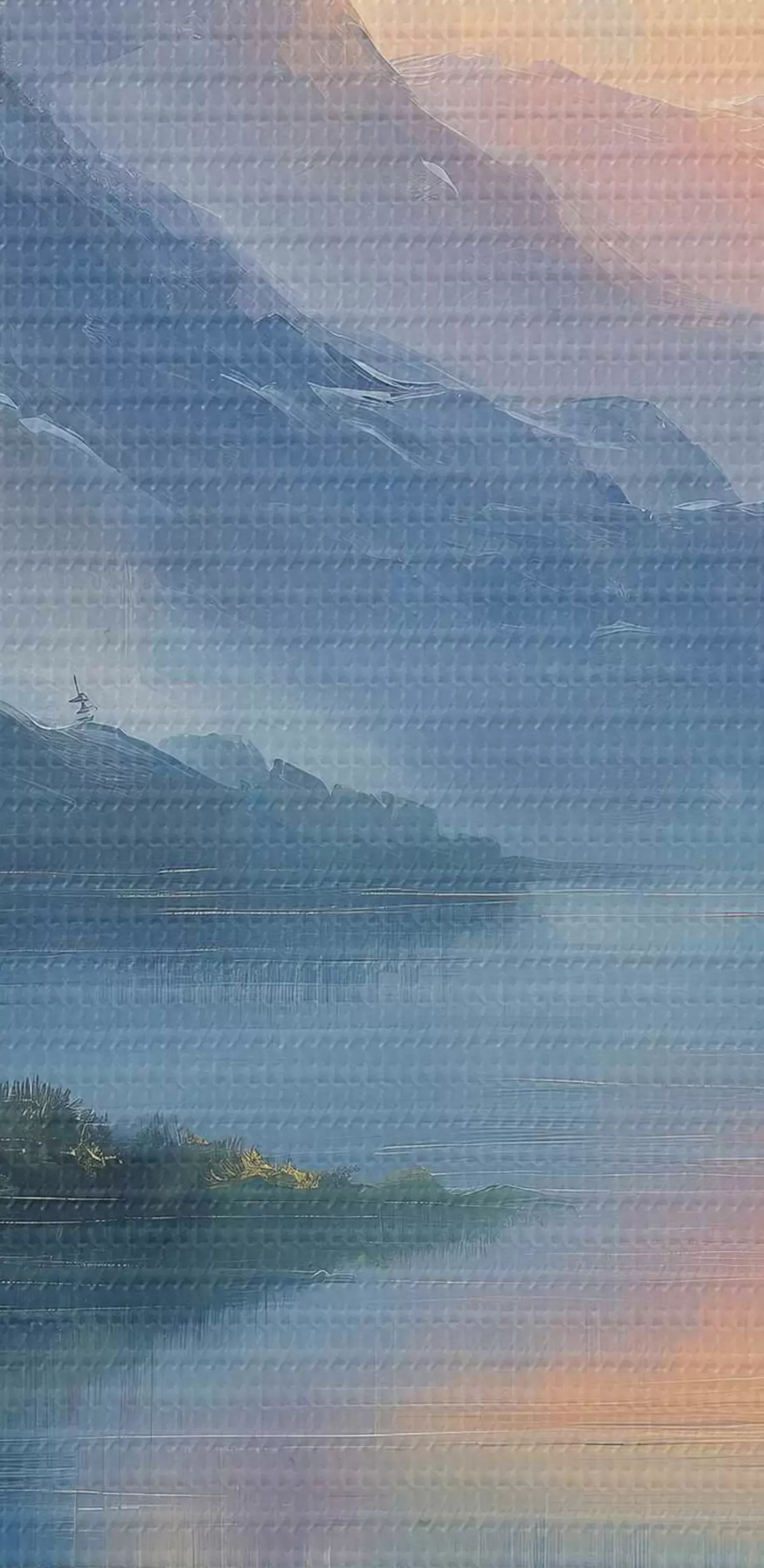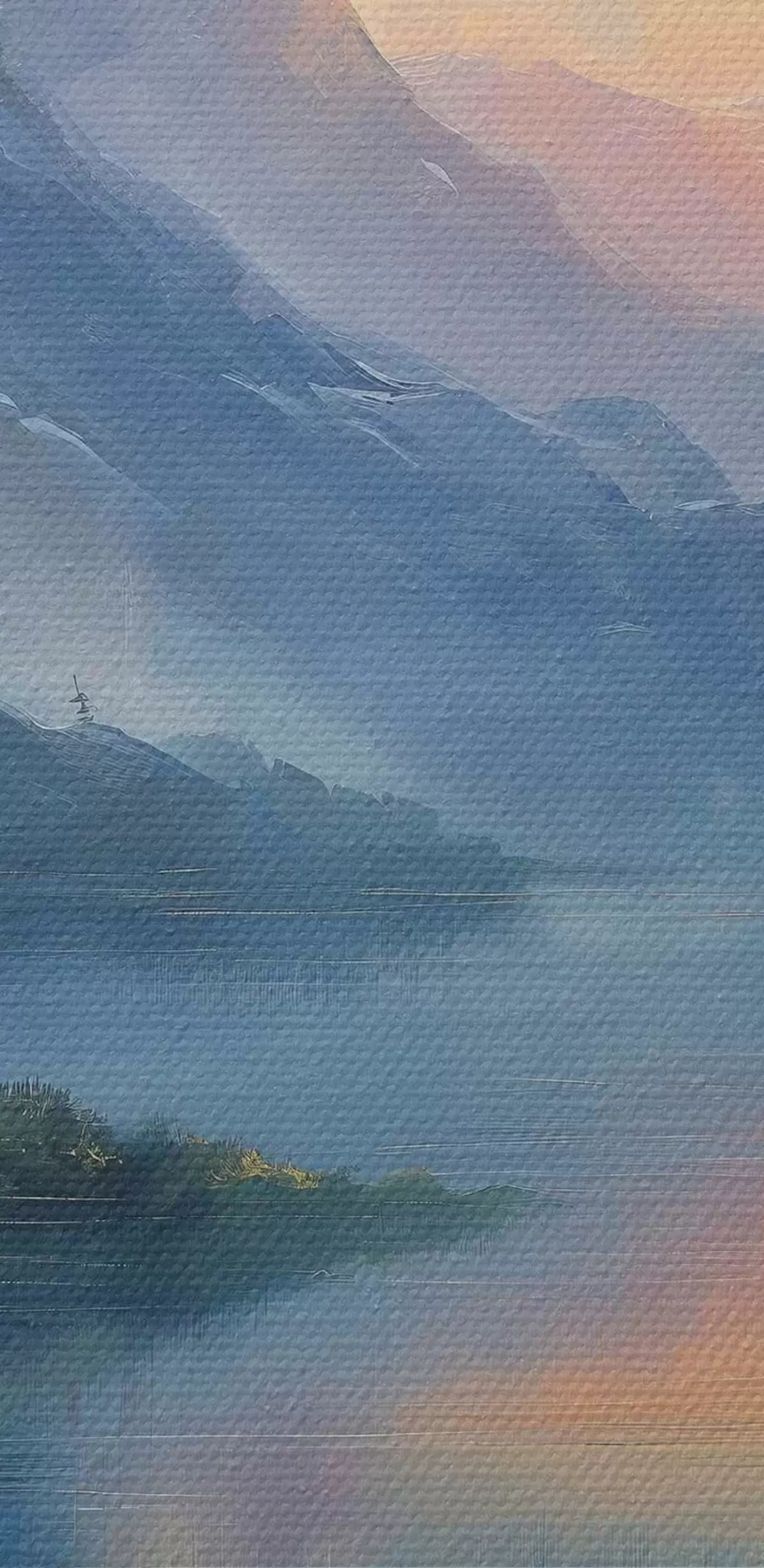 Obrázek Západ slunce v horách, mlha, řeka, les, olejomalba Nr r40302