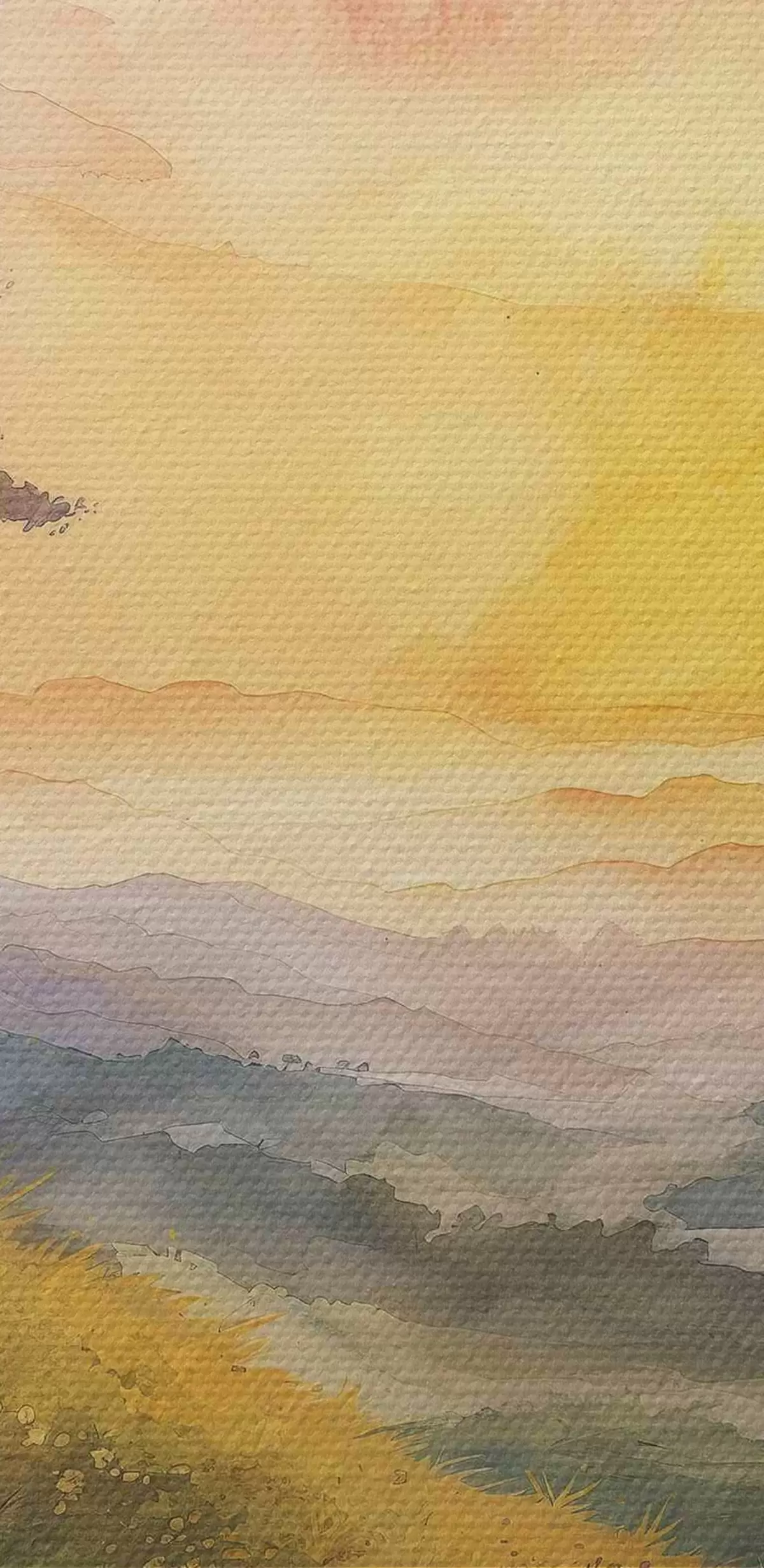Obrázek Louka s kopci a stromy, květiny, akvarel Nr r40303
