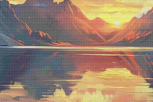 Obrázek Západ slunce v horách, řeka, přírodní krajiny, akrylová barva Nr r40306