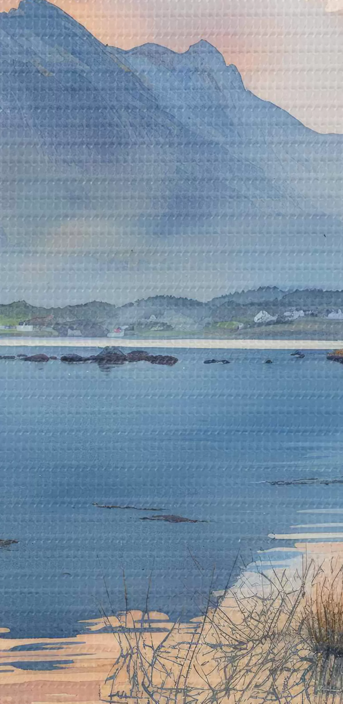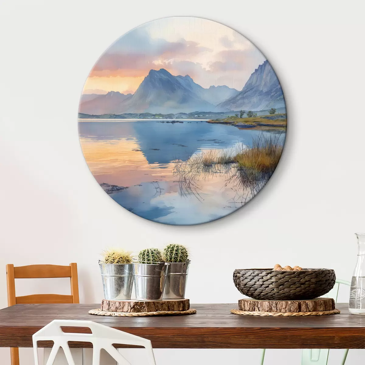 Obrázek Klidná řeka s horami, východ slunce, jemné barvy Nr r40307
