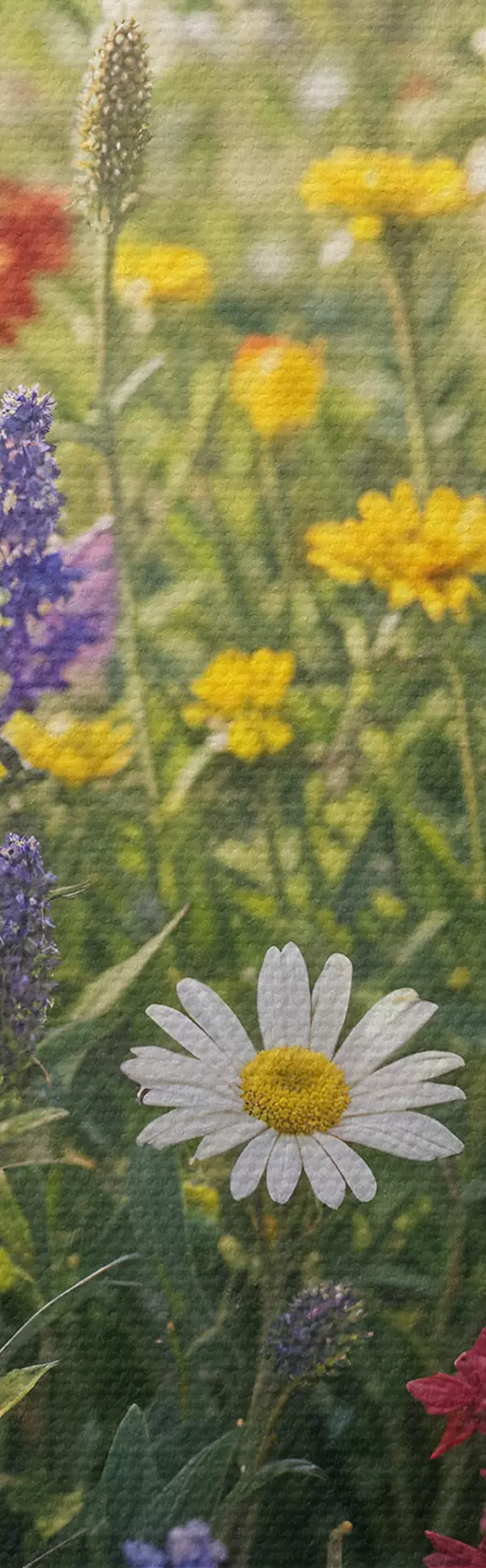 Obrázek Barevná divoká louka s různými kvetoucími květinami včetně sedmikrásek, levandule a červených květin Nr r40390
