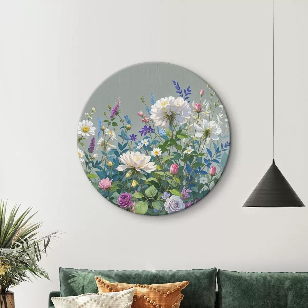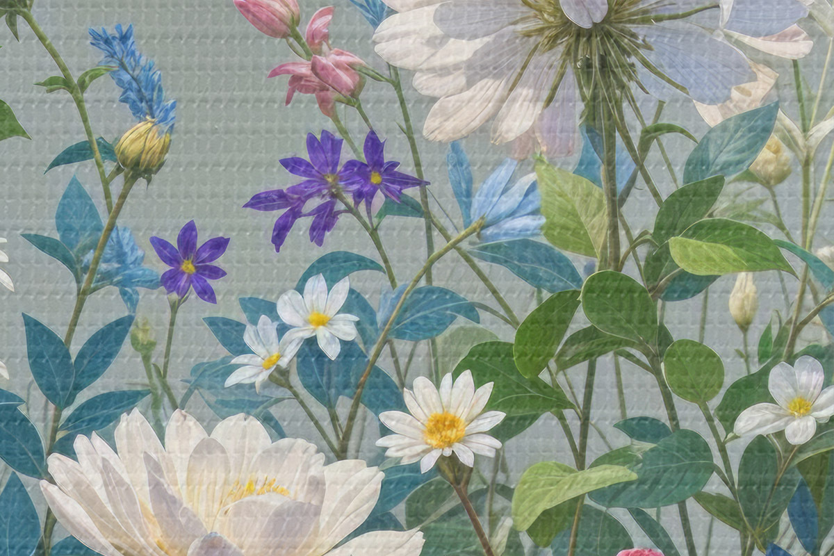 Obrázek Svěží, pulzující zahrada plná různých barevných květin a kvetoucích rostlin na šedém pozadí Nr r40393