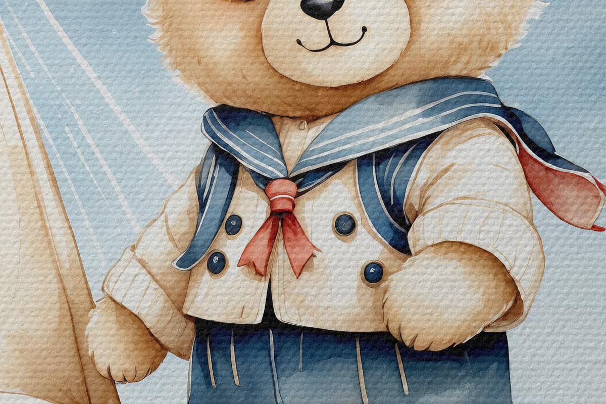 Obrázek Roztomilý akvarel medvěd v lodi s hvězdami na obloze Nr r40429