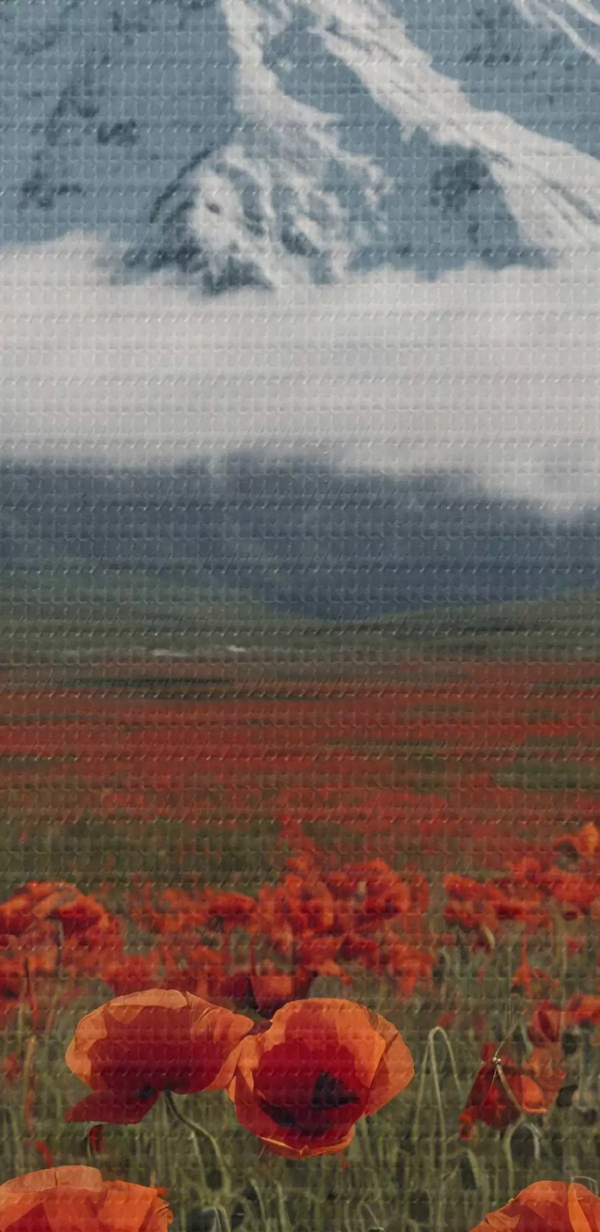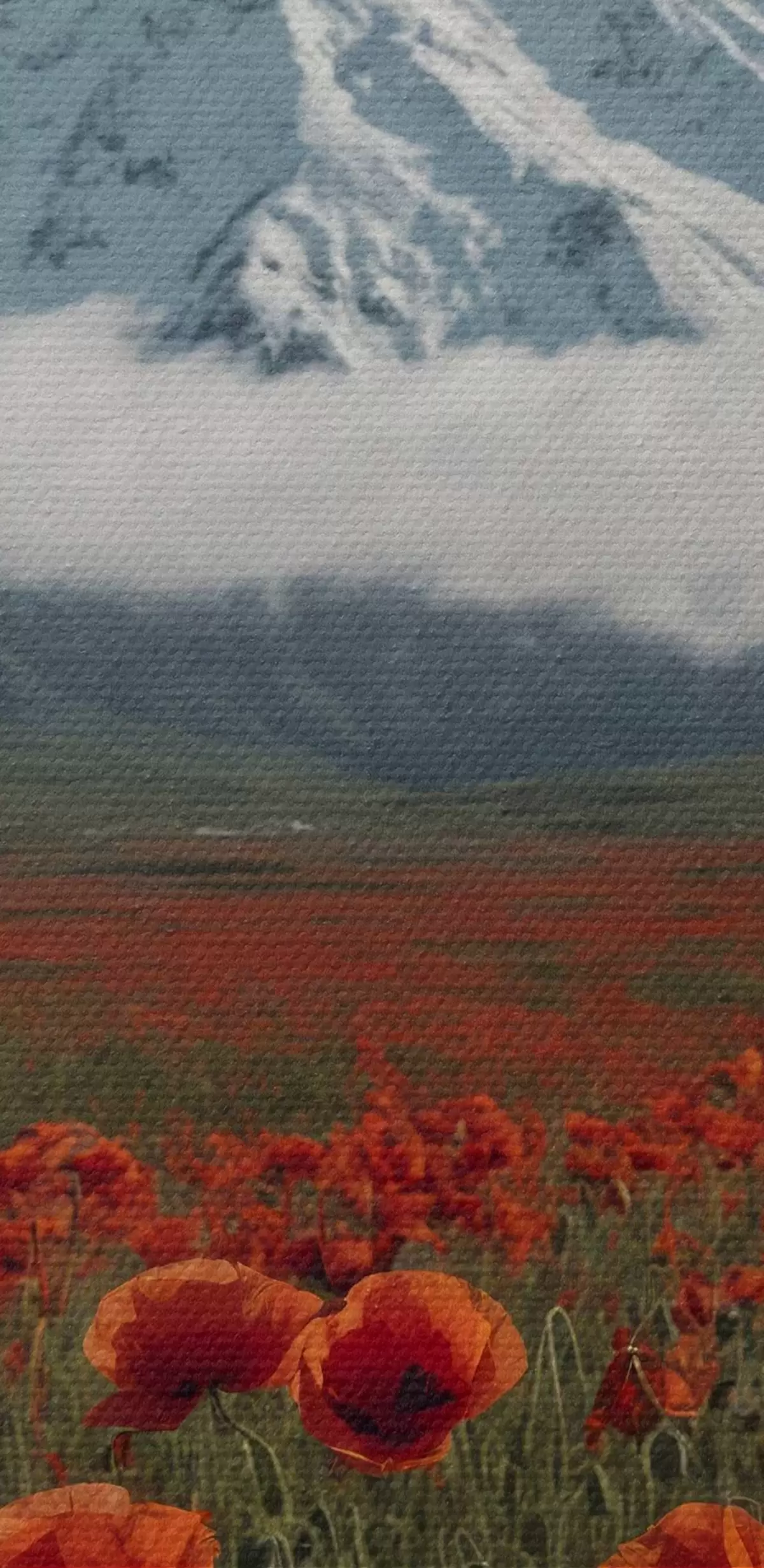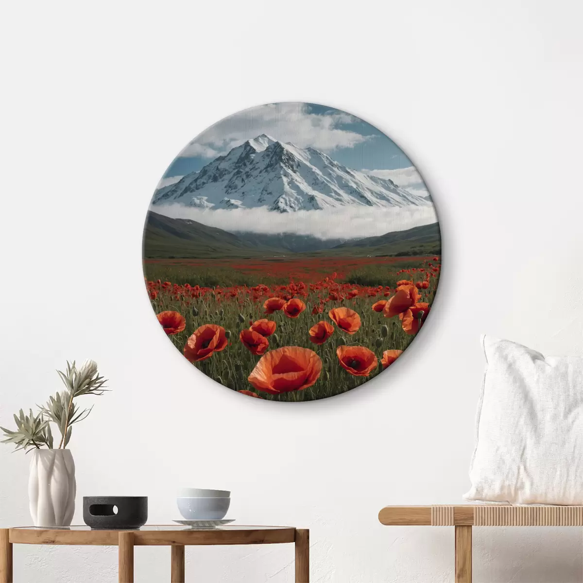 Obrázek Pole vlčích máků na pozadí zasněžených hor Nr r40469
