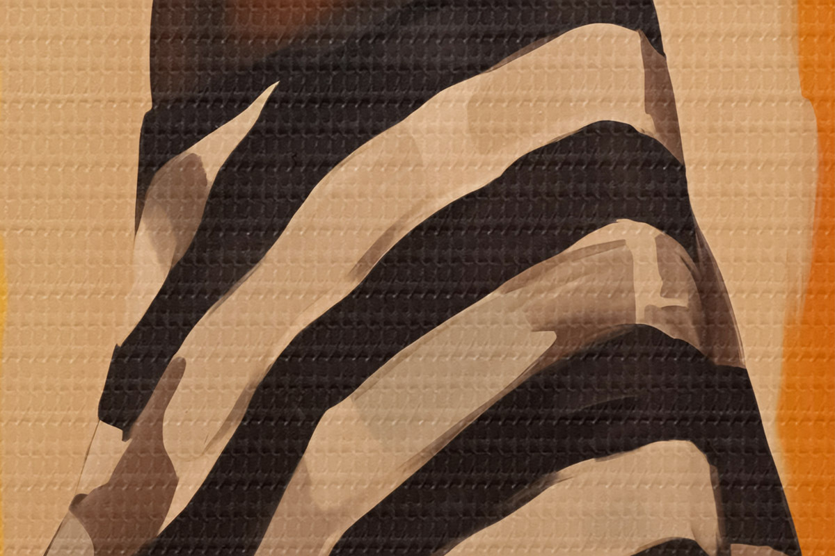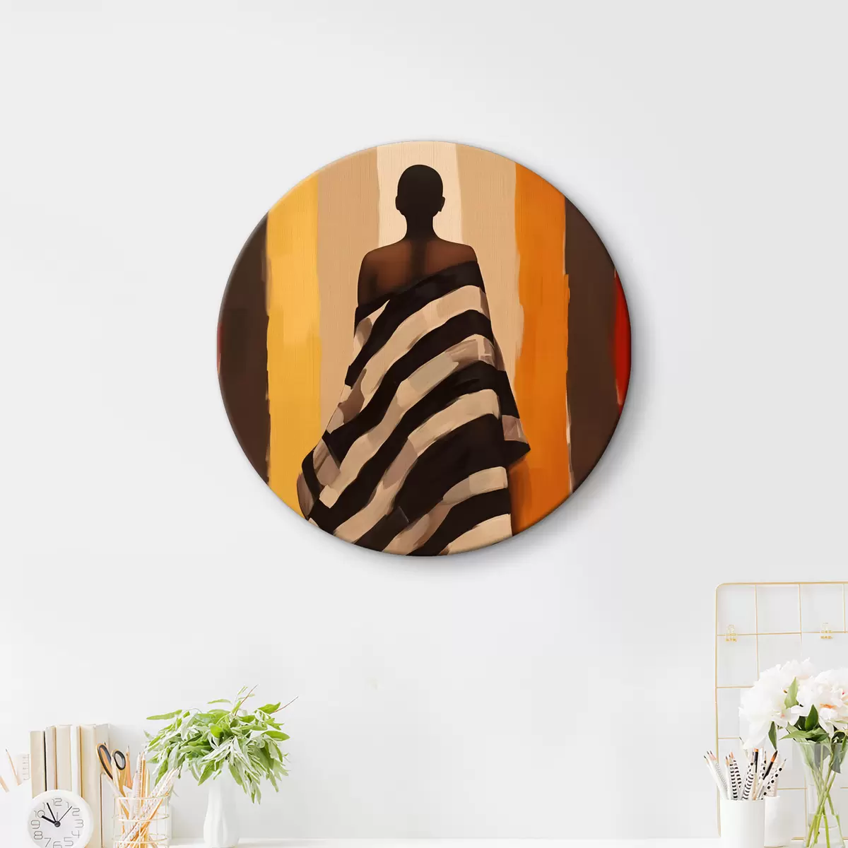 Obrázek Silueta afroamerické ženy v pruhovaném plášti na pozadí se svislými pruhy, černá, béžová, žlutá, červená, hnědá Nr r40487