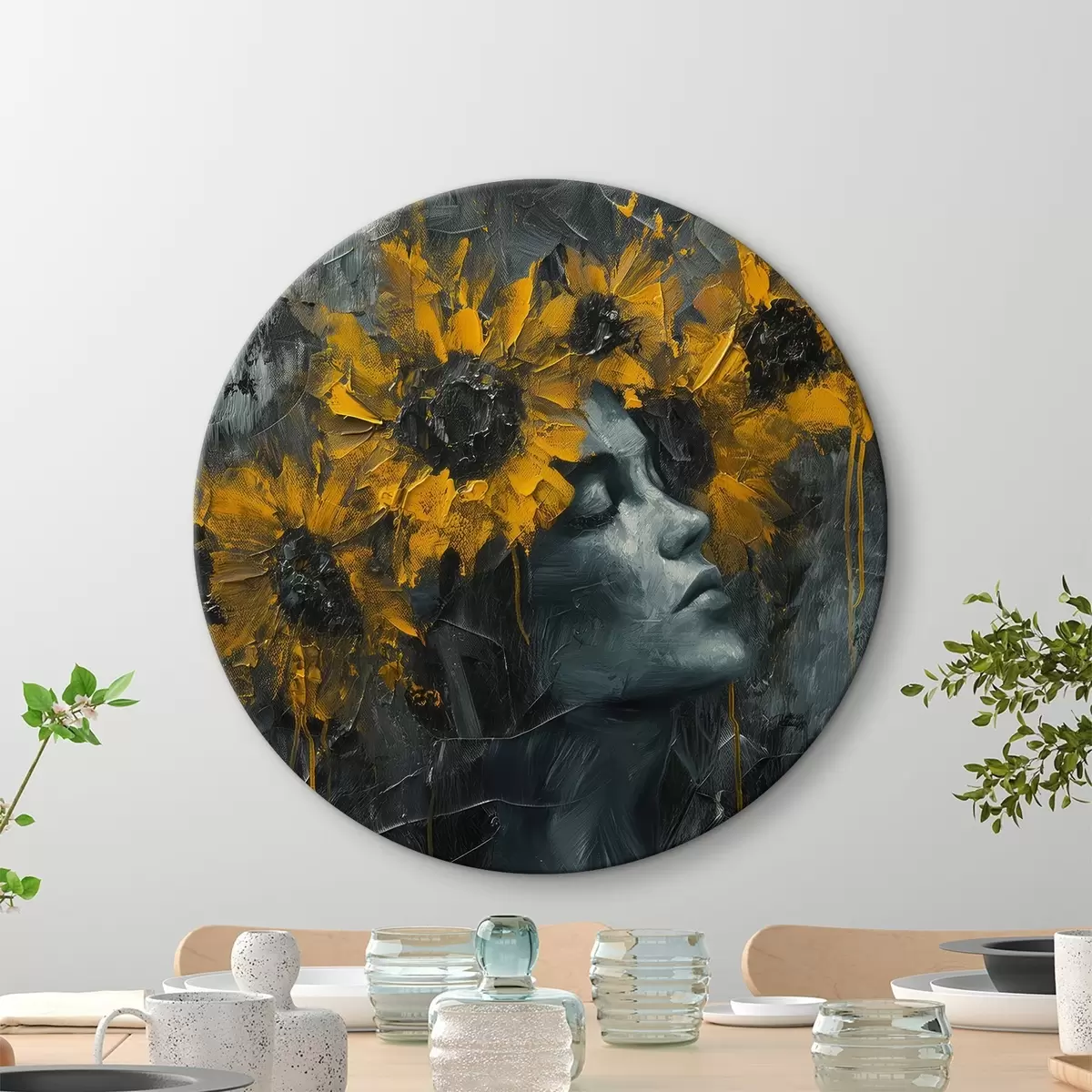 Obrázek Tvář ženy v odstínech šedé se slunečnicemi Nr r40500