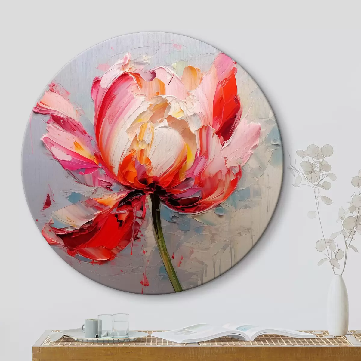Obrázek Kvetoucí tulipán, červená, růžová, šedá barva Nr r40519