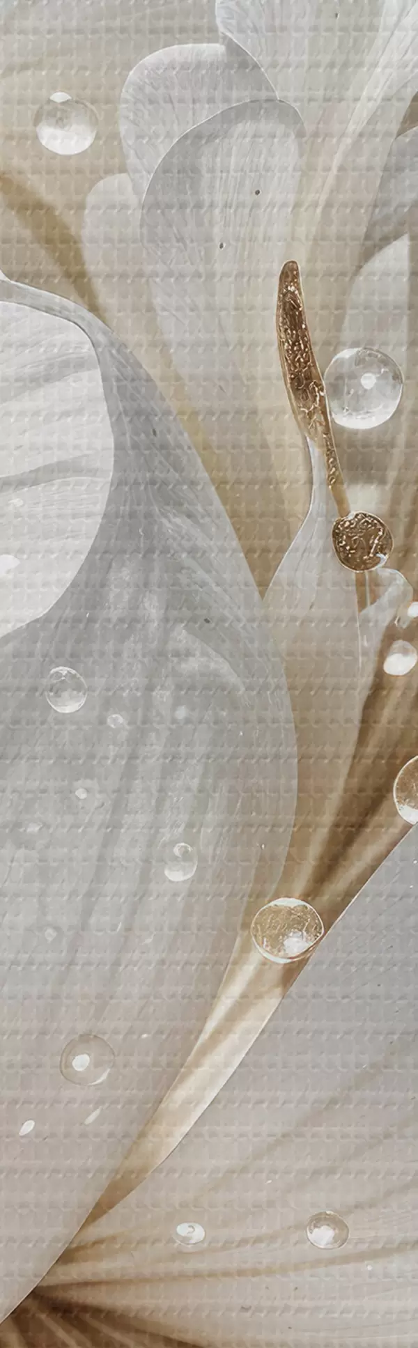 Obrázek Detail bílého květu pivoňky s kapkami vody na okvětních lístcích na rozmazaném pozadí Nr r40539