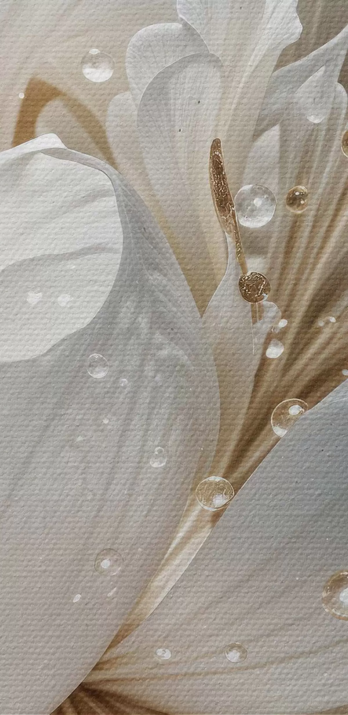Obrázek Detail bílého květu pivoňky s kapkami vody na okvětních lístcích na rozmazaném pozadí Nr r40539