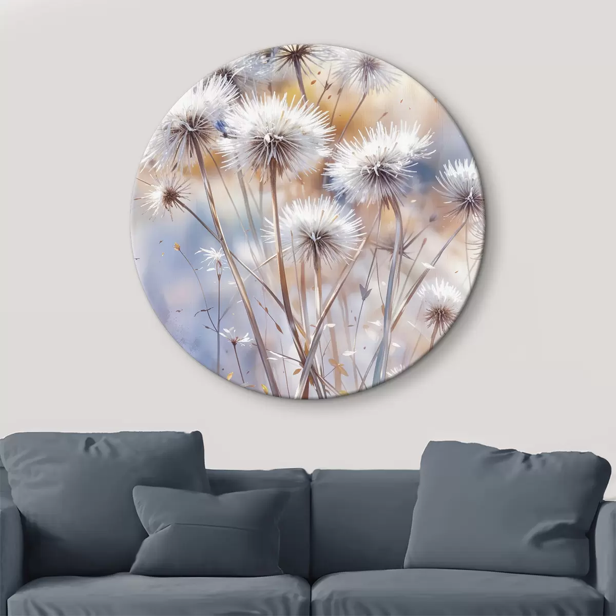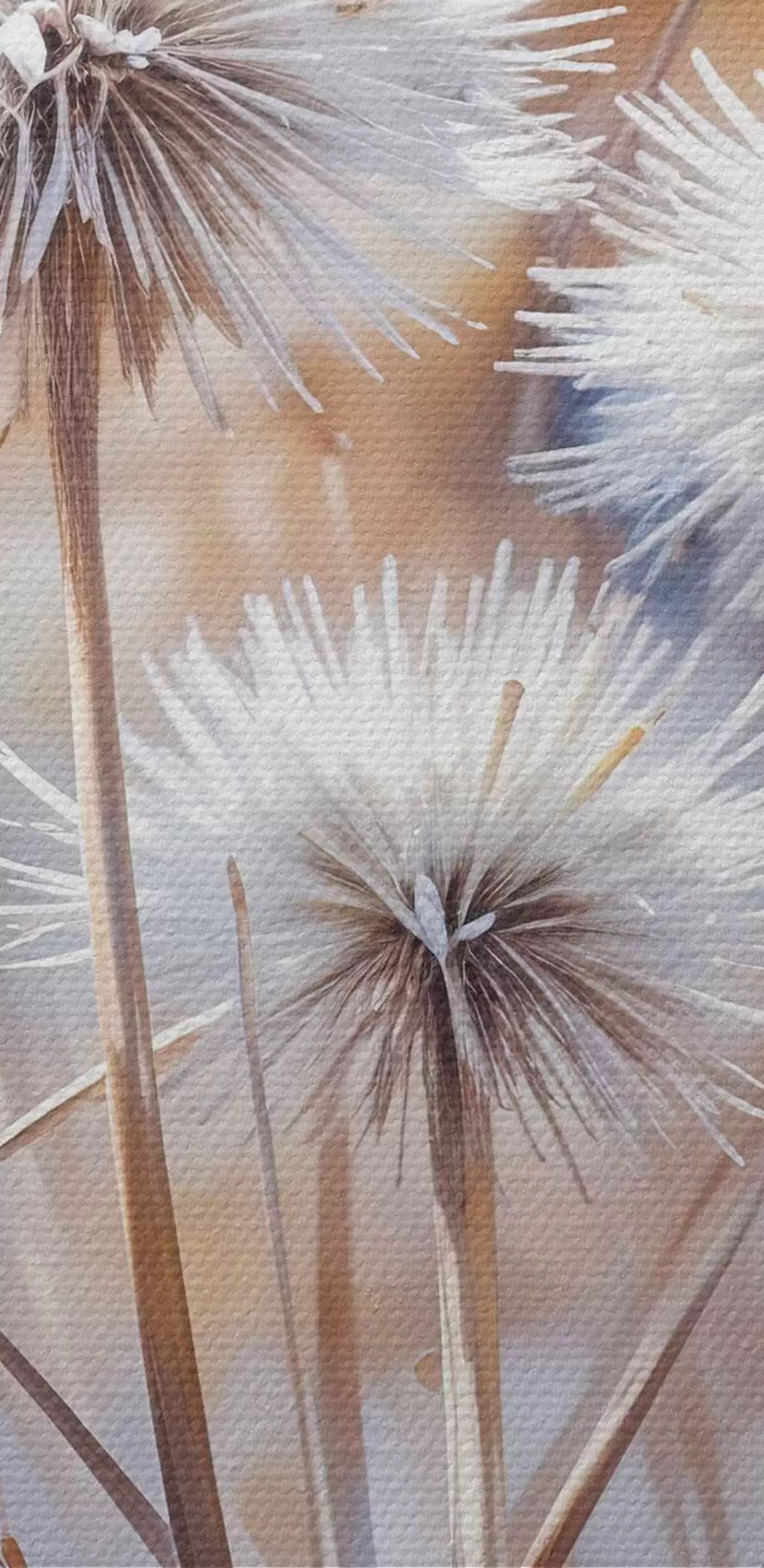 Obrázek Nadýchané bílé květy pampelišek na rozmazaném akvarelovém pozadí s teplým osvětlením Nr r40541