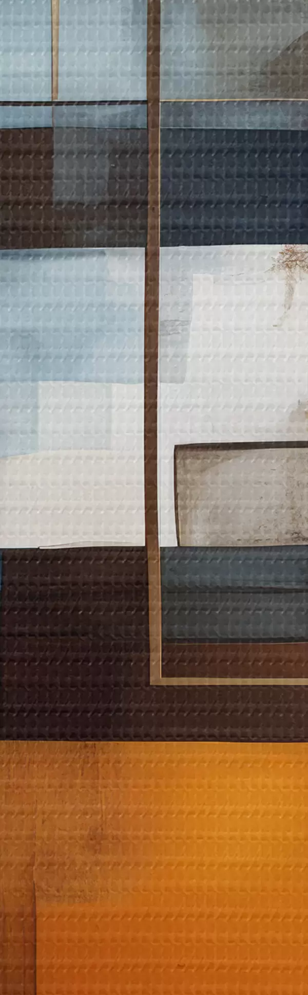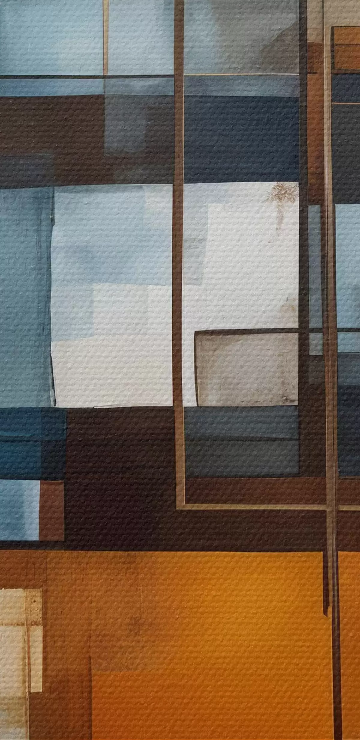 Obrázek Abstraktní geometrické tvary v odstínech modré, oranžové a hnědé vytvářejí moderní minimalistickou kompozici. Nr r40563