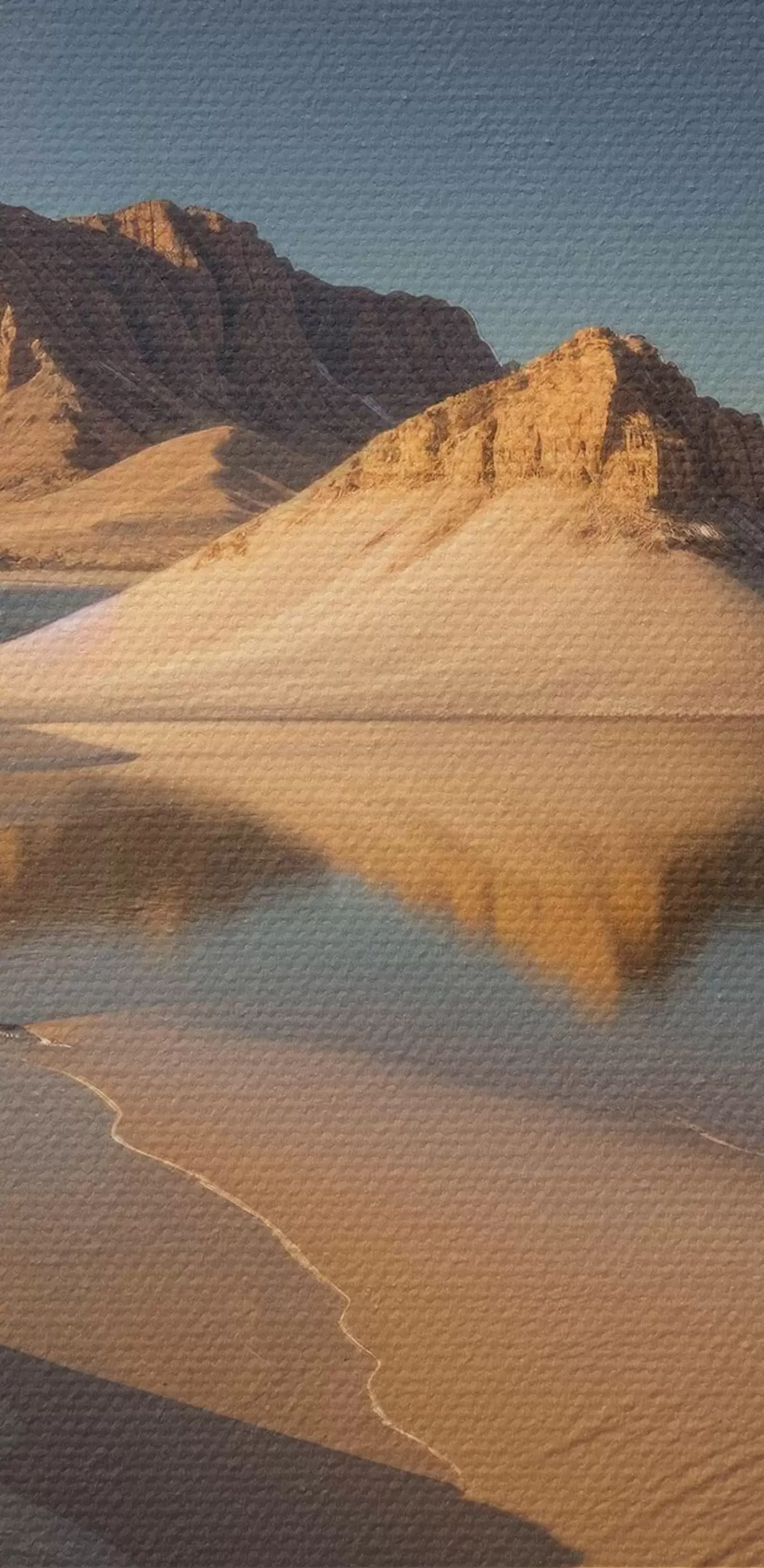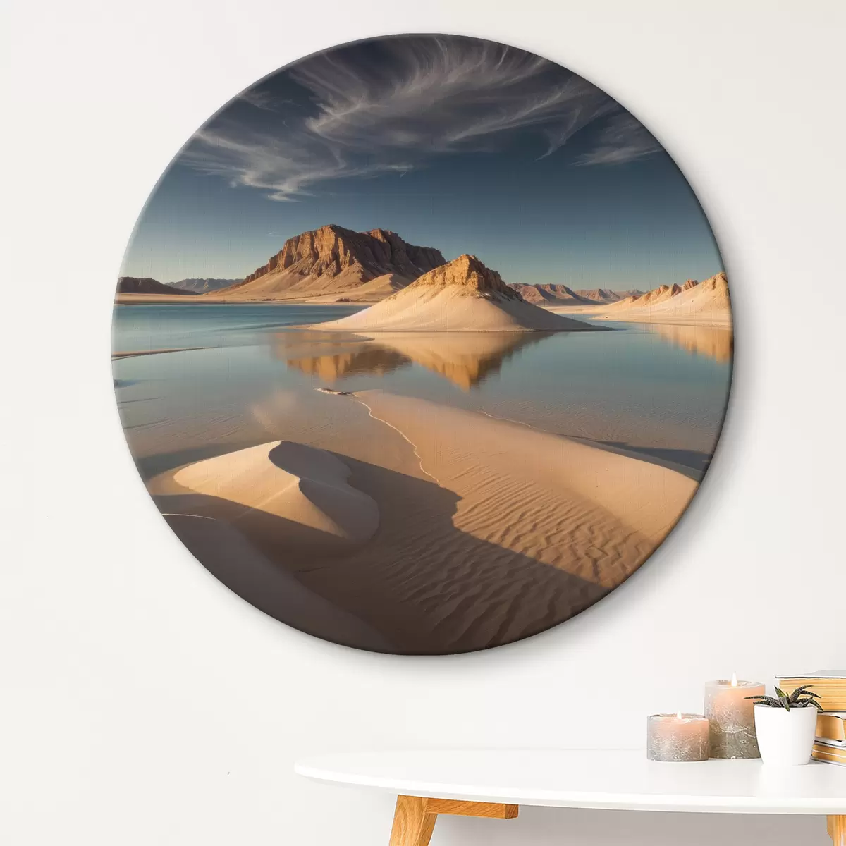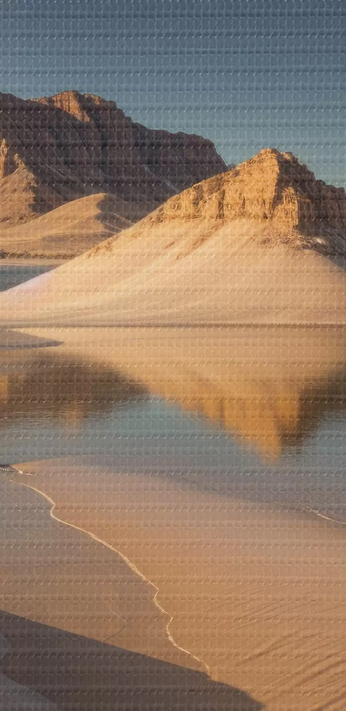 Obrázek Rozsáhlá pouštní krajina s vysokými skalními útvary, které se odrážejí v mělké vodě Nr r40568