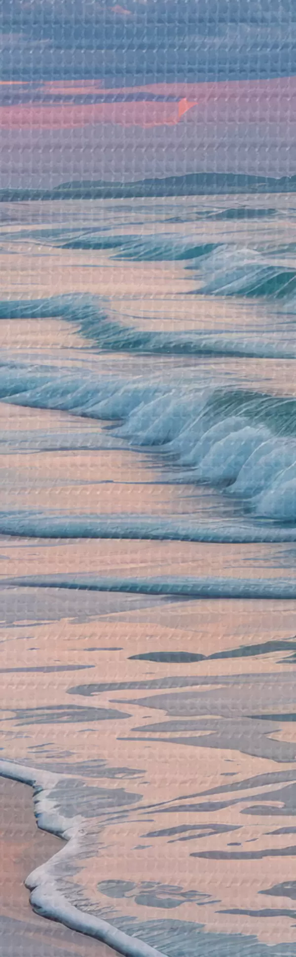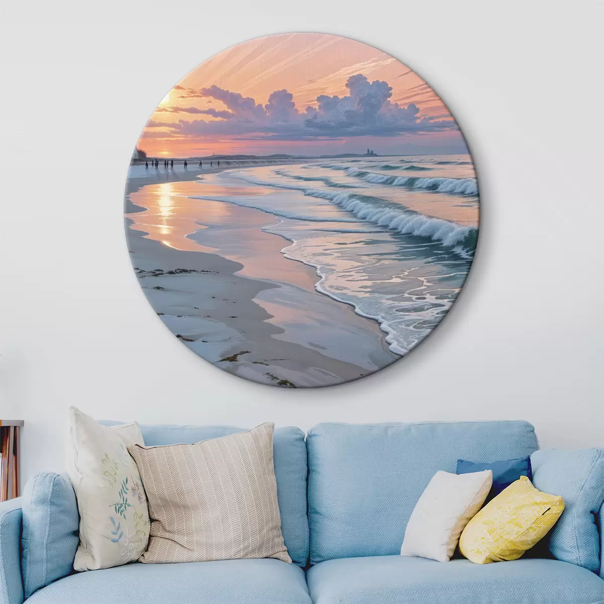 Obrázek Klidná scéna na pláži při západu slunce s jemnými vlnami šplouchajícími na písečném pobřeží Nr r40606