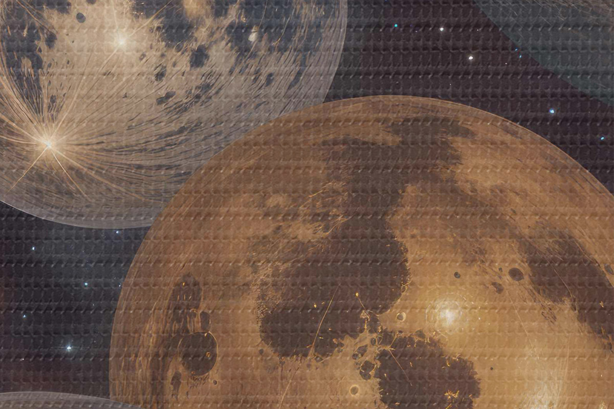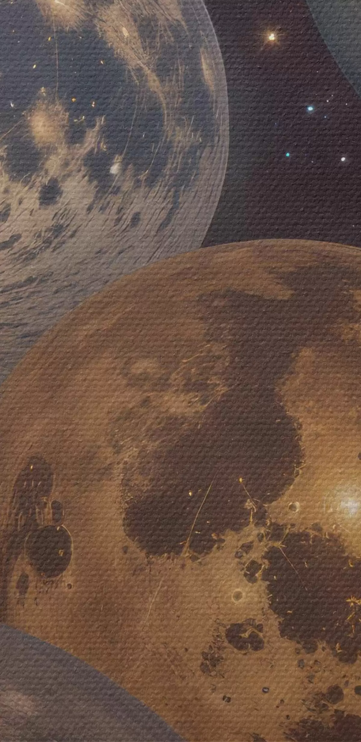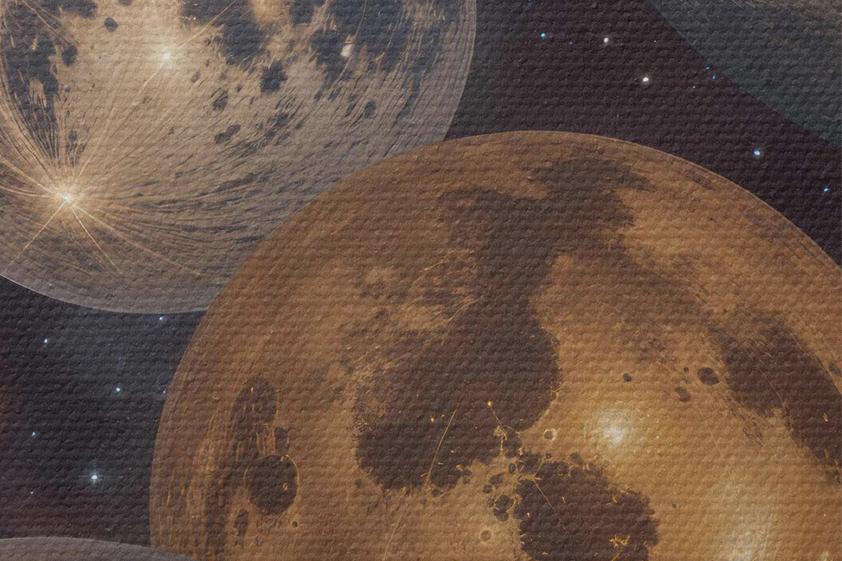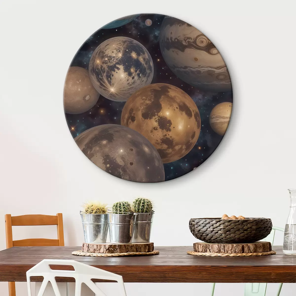 Obrázek Abstraktní vesmírný tisk s barevnými planetami a měsíci plujícími na hvězdné noční obloze Nr r40607