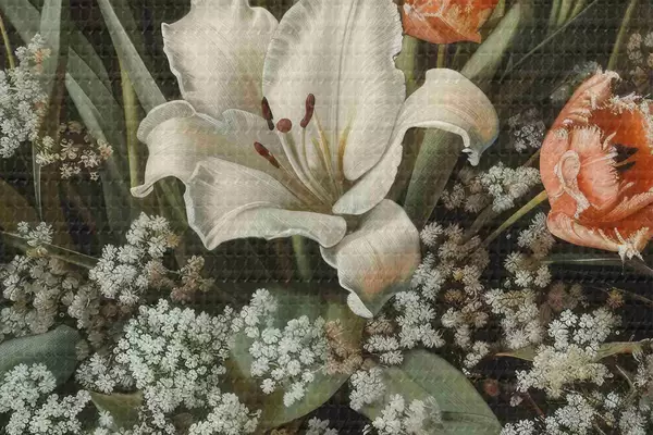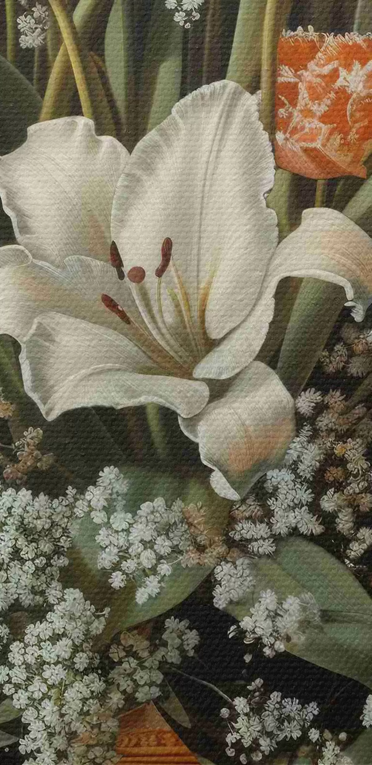 Obrázek Extravagantní barokní zátiší s vázou plnou tulipánů, karafiátů a hyacintů, imitace olejomalby Nr r40658