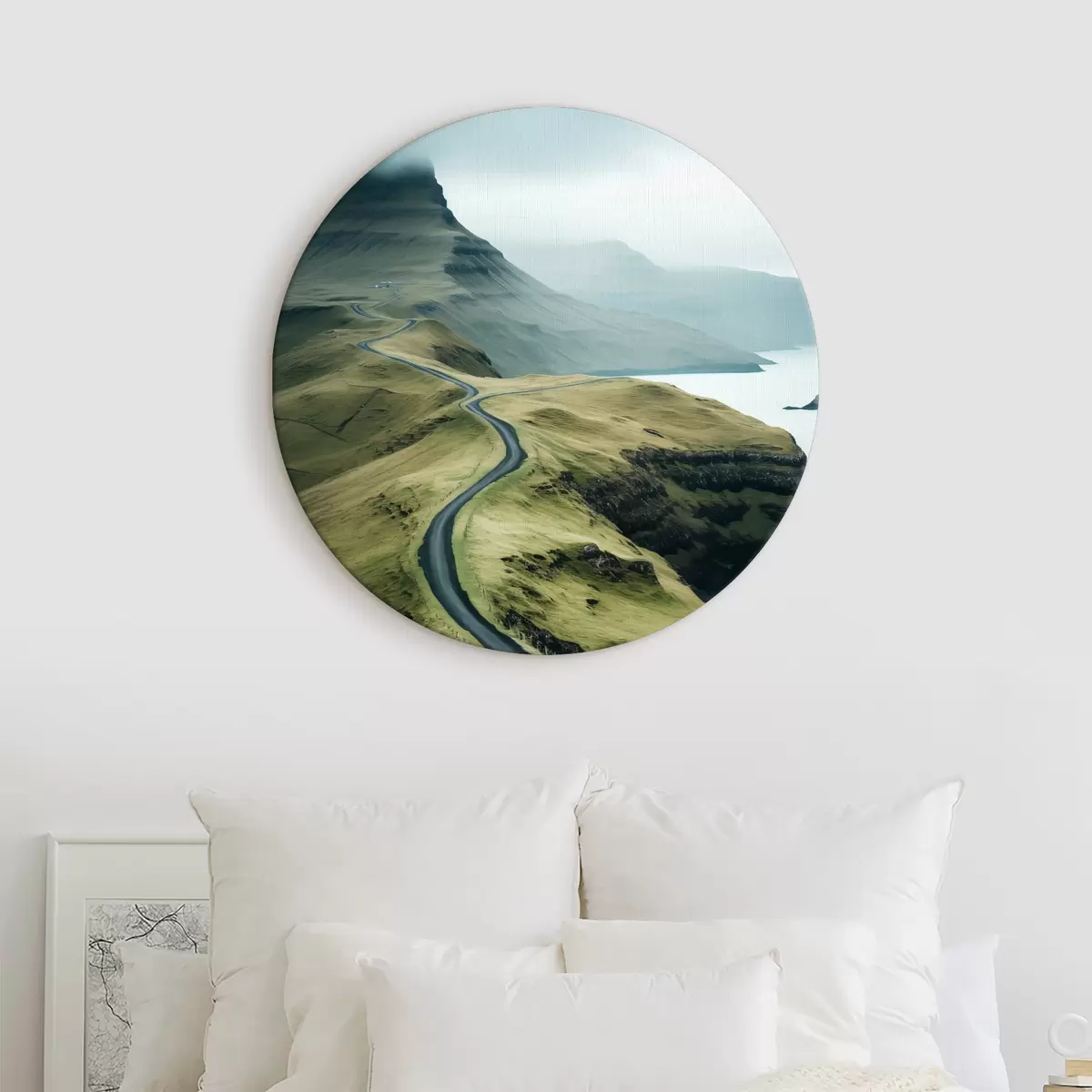 Kulaté obrazy Minimalistická silniční krajina na Faerských ostrovech u moře r40726