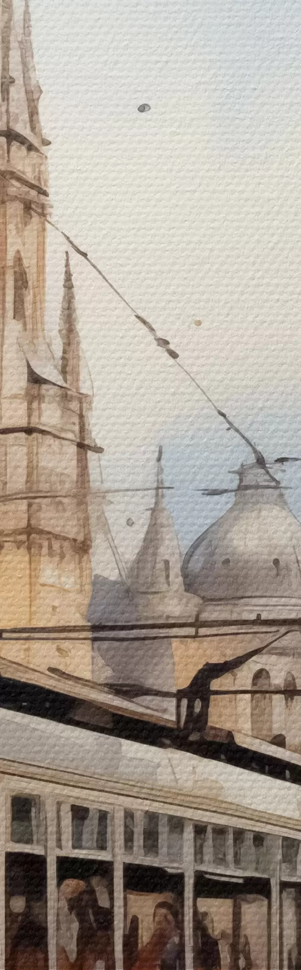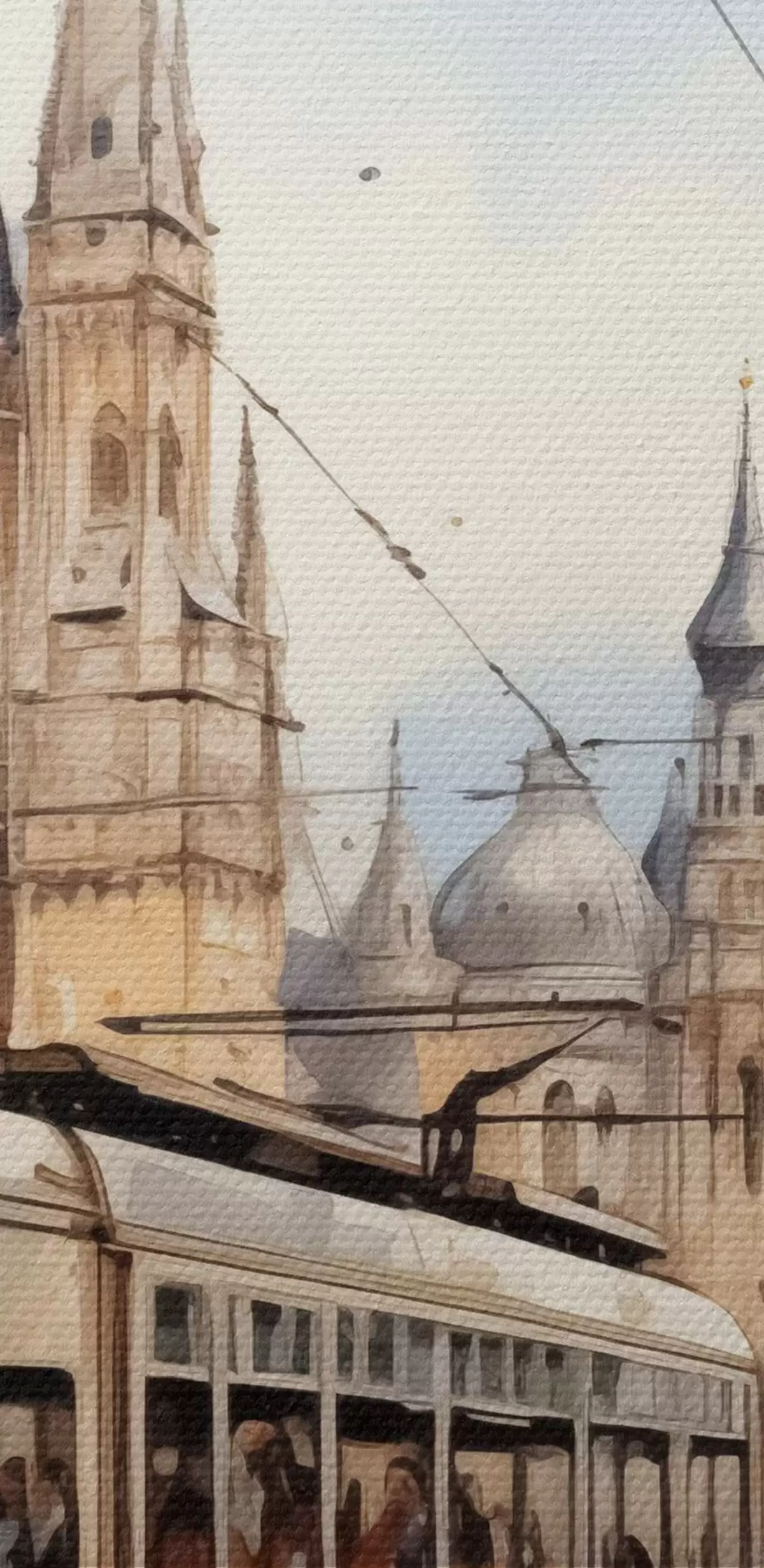 Obrázek Červená tramvaj na vídeňské ulici akvarel Nr r40732