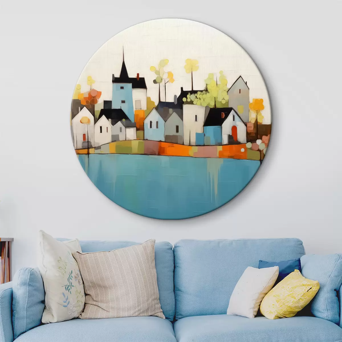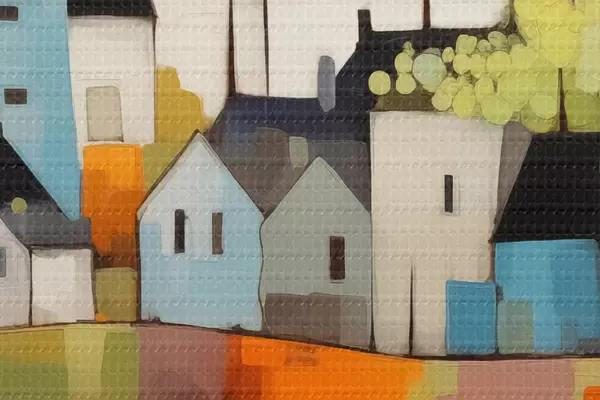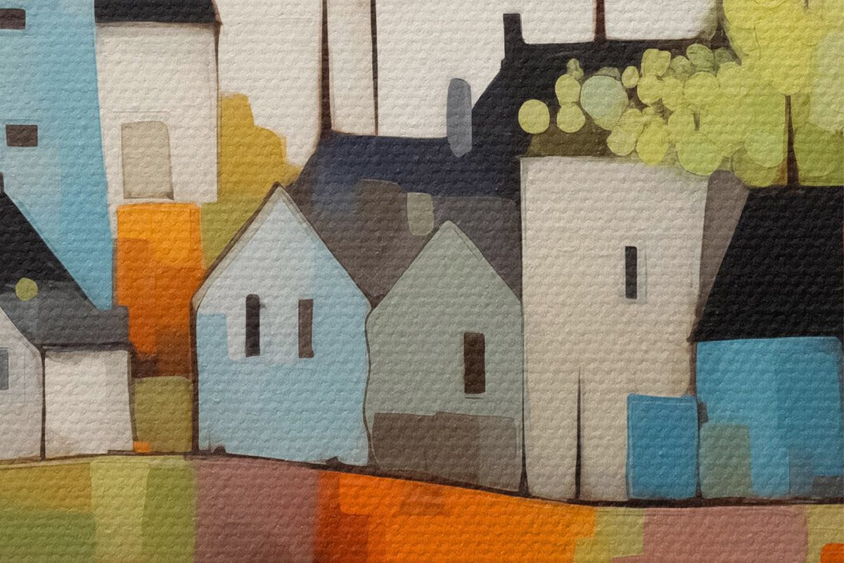 Obrázek Abstraktní město a domy, modrá, žlutá, červená barva Nr r40751