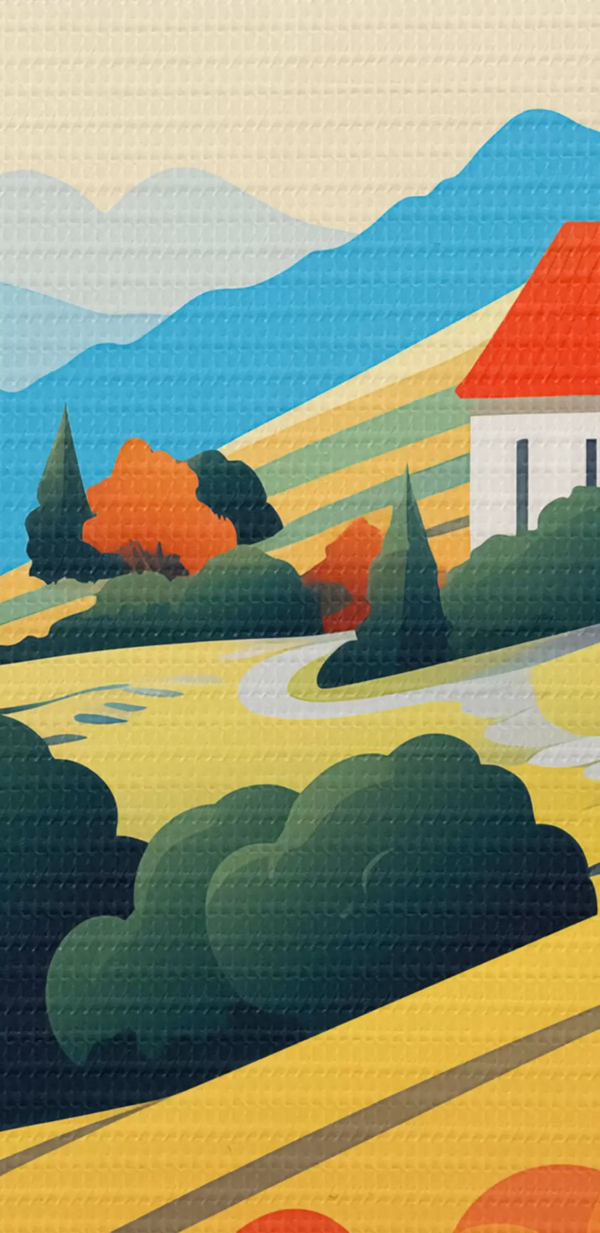 Obrázek Světlá venkovská krajina s poli, máky a domy Nr r40756