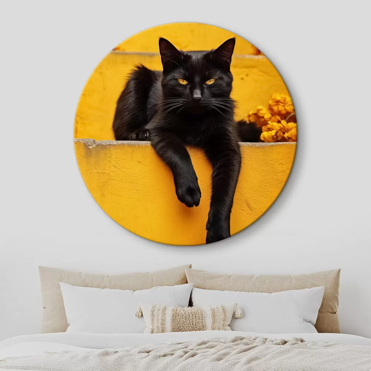 Obrázek Na žlutých schodech leží černá kočka Nr r40798