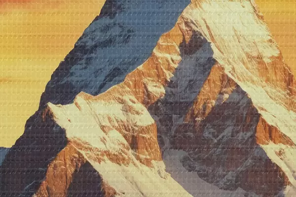 Obrázek Zasněžené hory a oranžová obloha Nr r40852