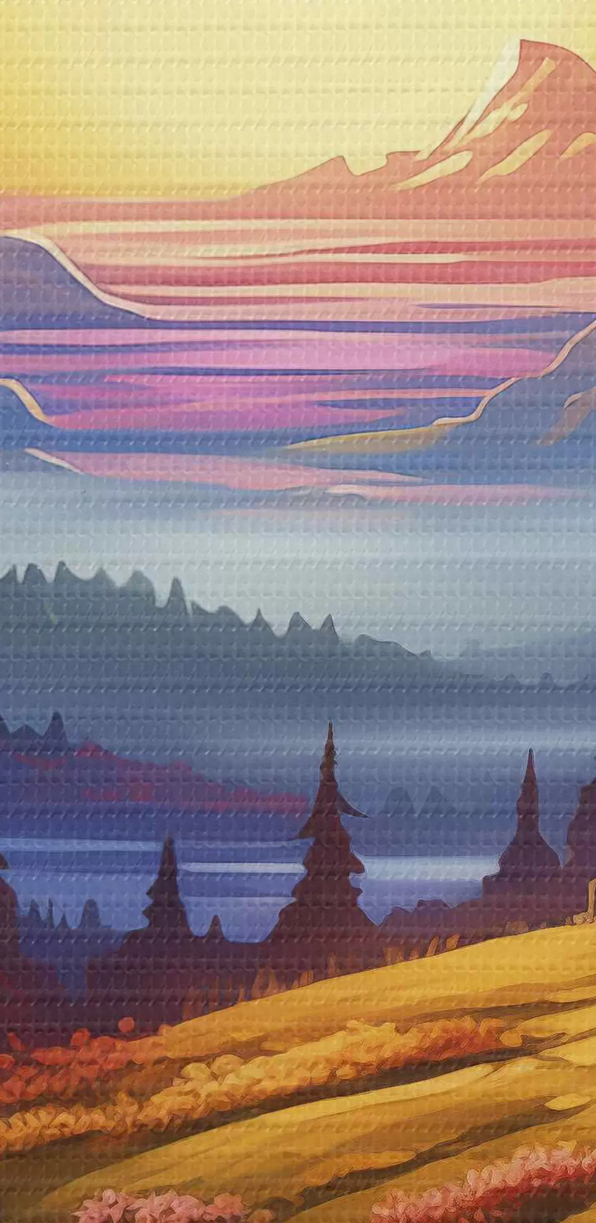 Obrázek Rozmarná krajina s horami a dřevěným domem Nr r40940