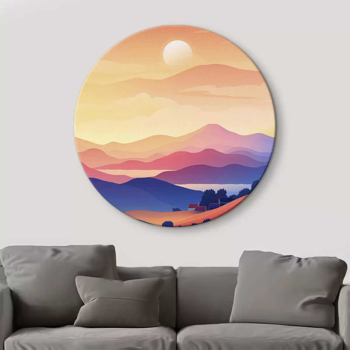 Obrázek Abstrakce krajiny, hory, západ slunce, domy Nr r40948