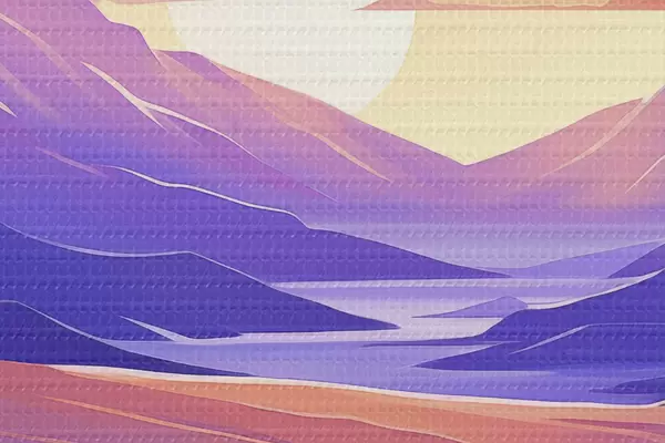 Obrázek Fialový západ slunce v horách, řeka, stromy, malý dům Nr r40949