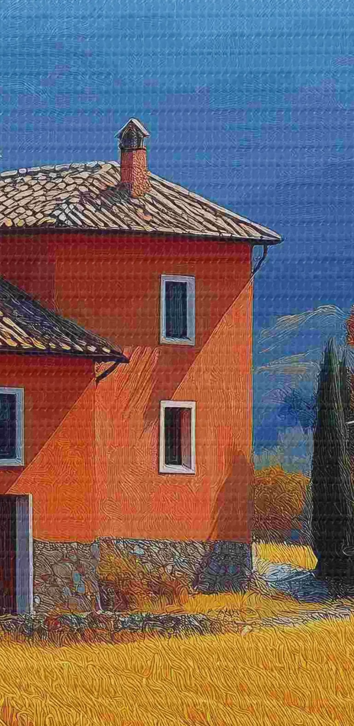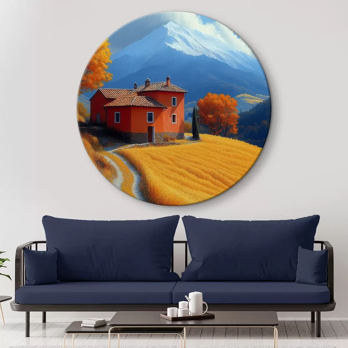 Obrázek Chalupa v poli s podzimními horami v pozadí Nr r40962