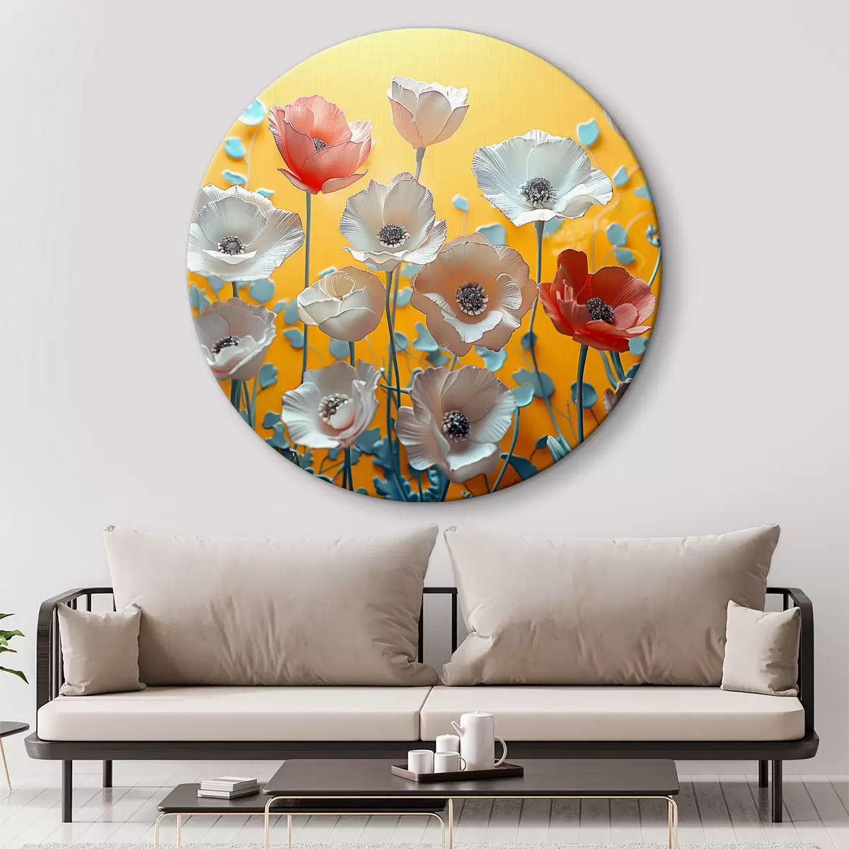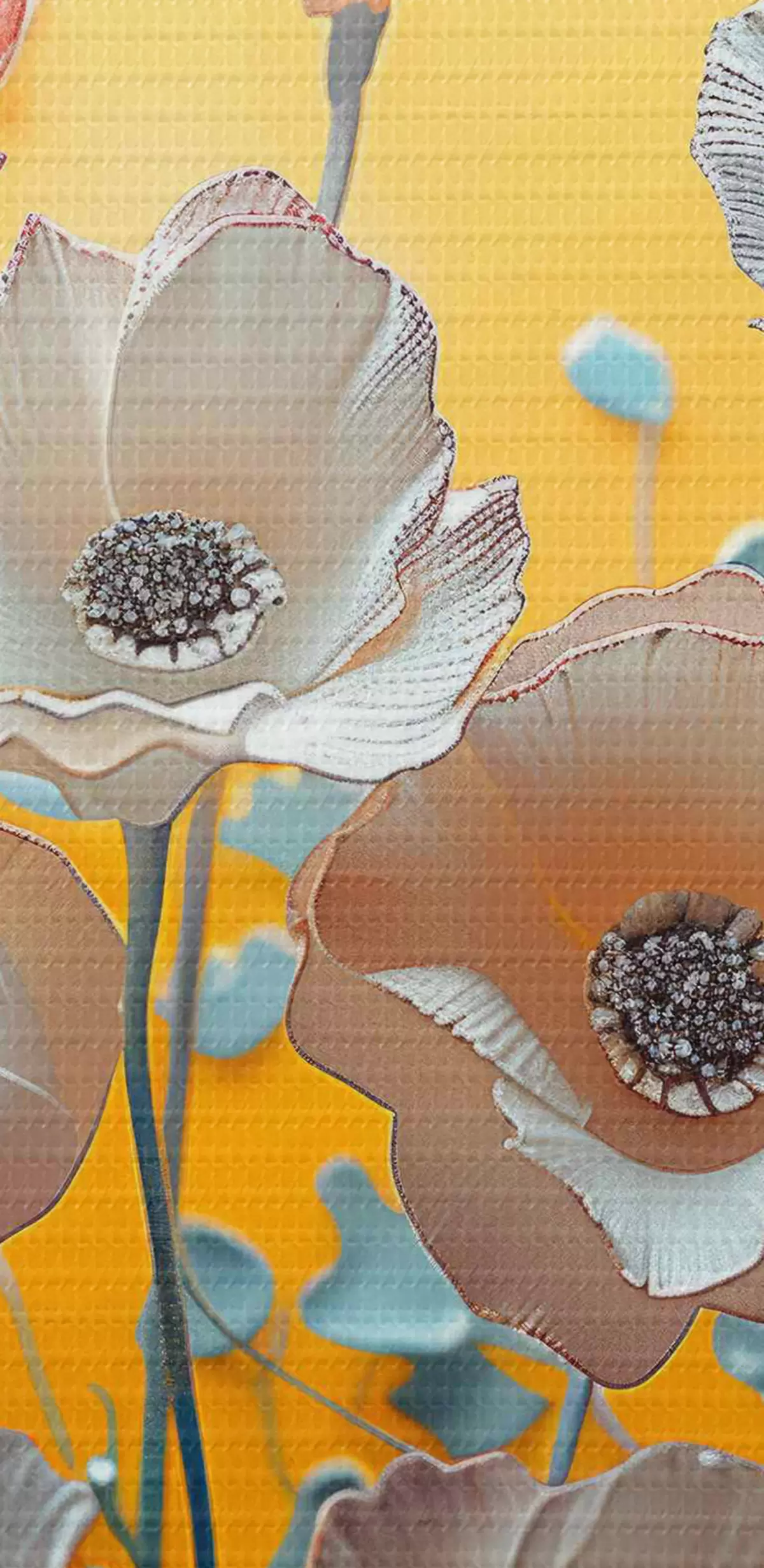 Obrázek Bílé a červené pivoňky na žlutém pozadí Nr r40975
