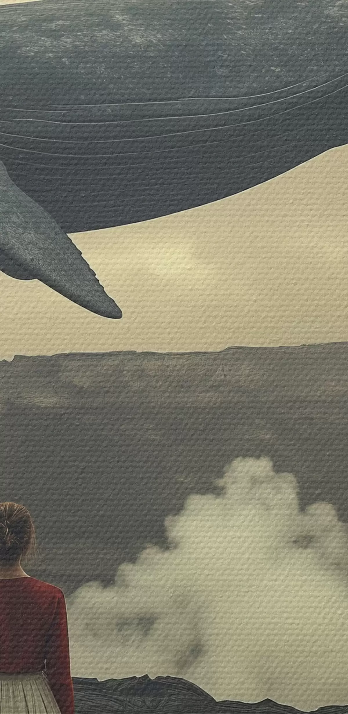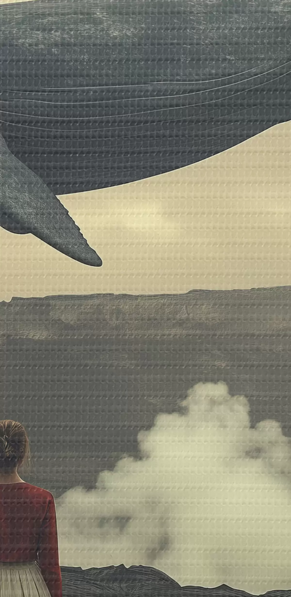 Obrázek Dívka na lávě s velkou létající velrybou na obloze Nr r40986