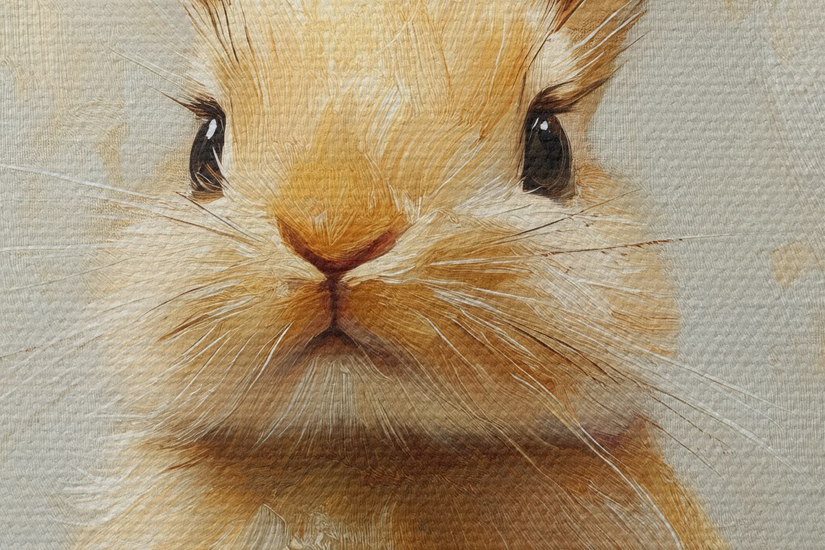 Obrázek Béžový zajíček na světlém pozadí s výraznými tahy štětce Nr r41000