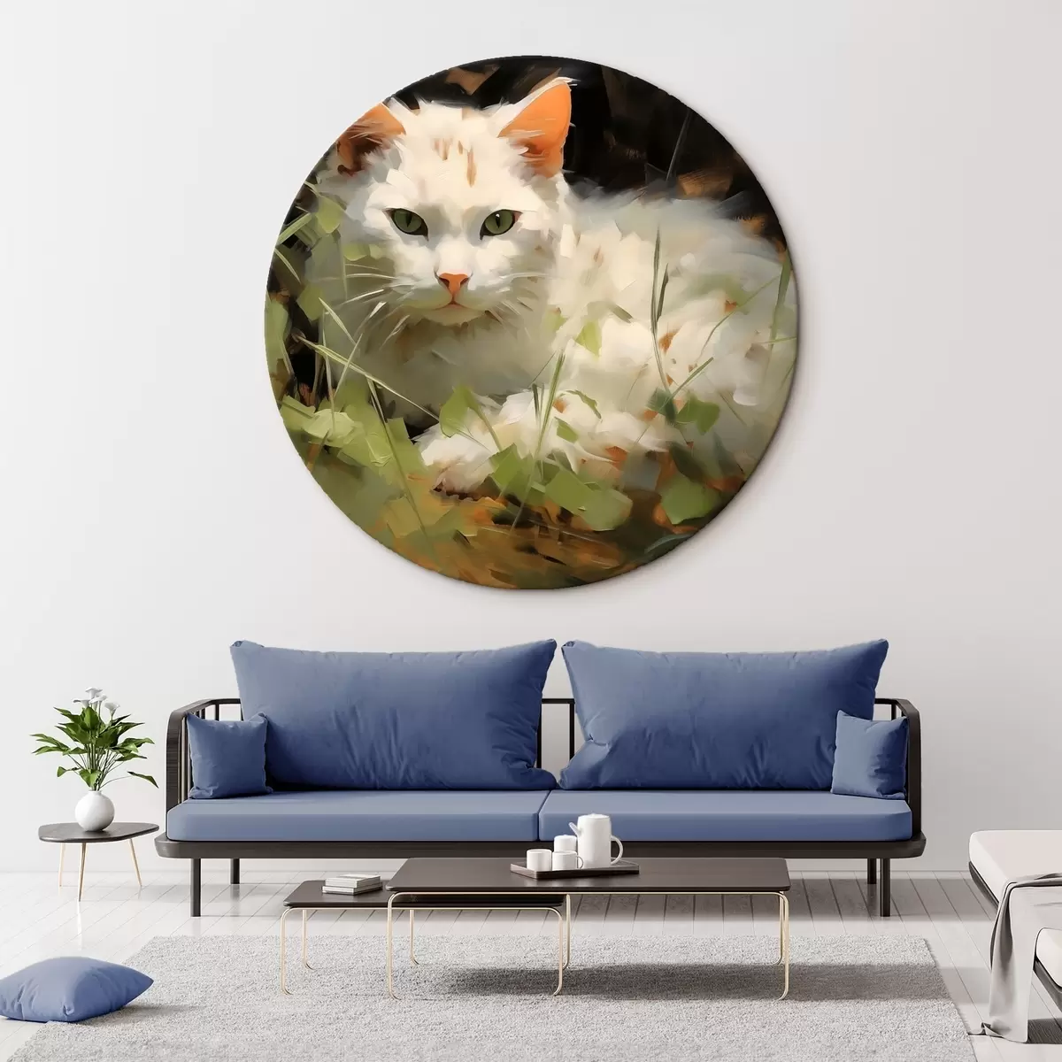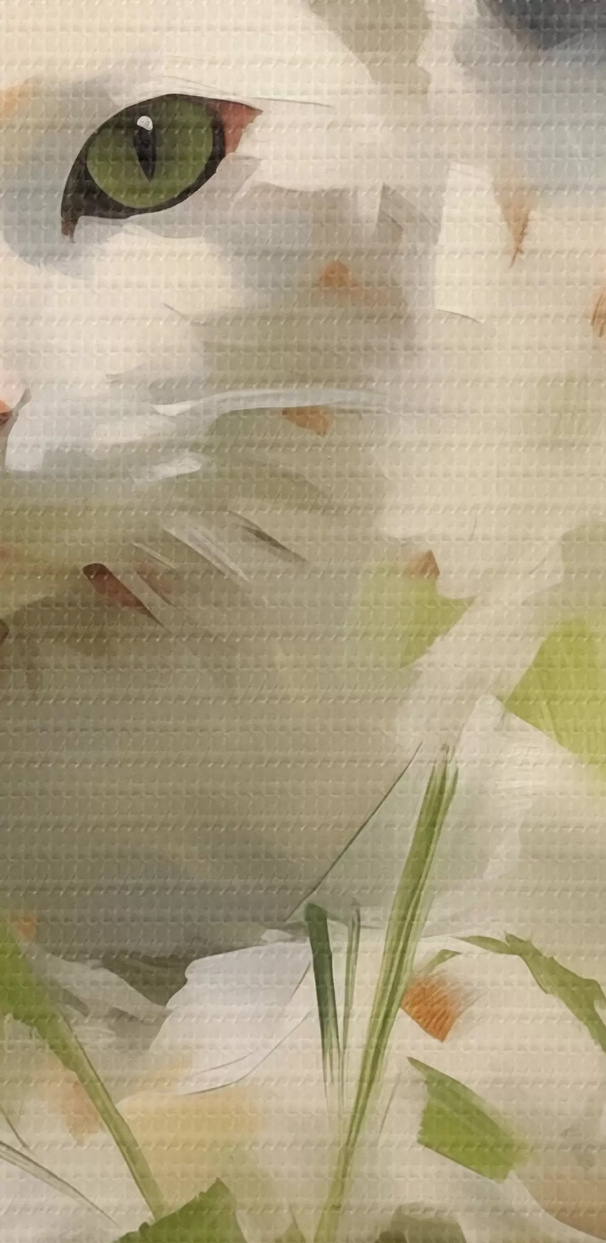 Obrázek Bílá kočka ležící v trávě, imitace tahů štětcem Nr r41017