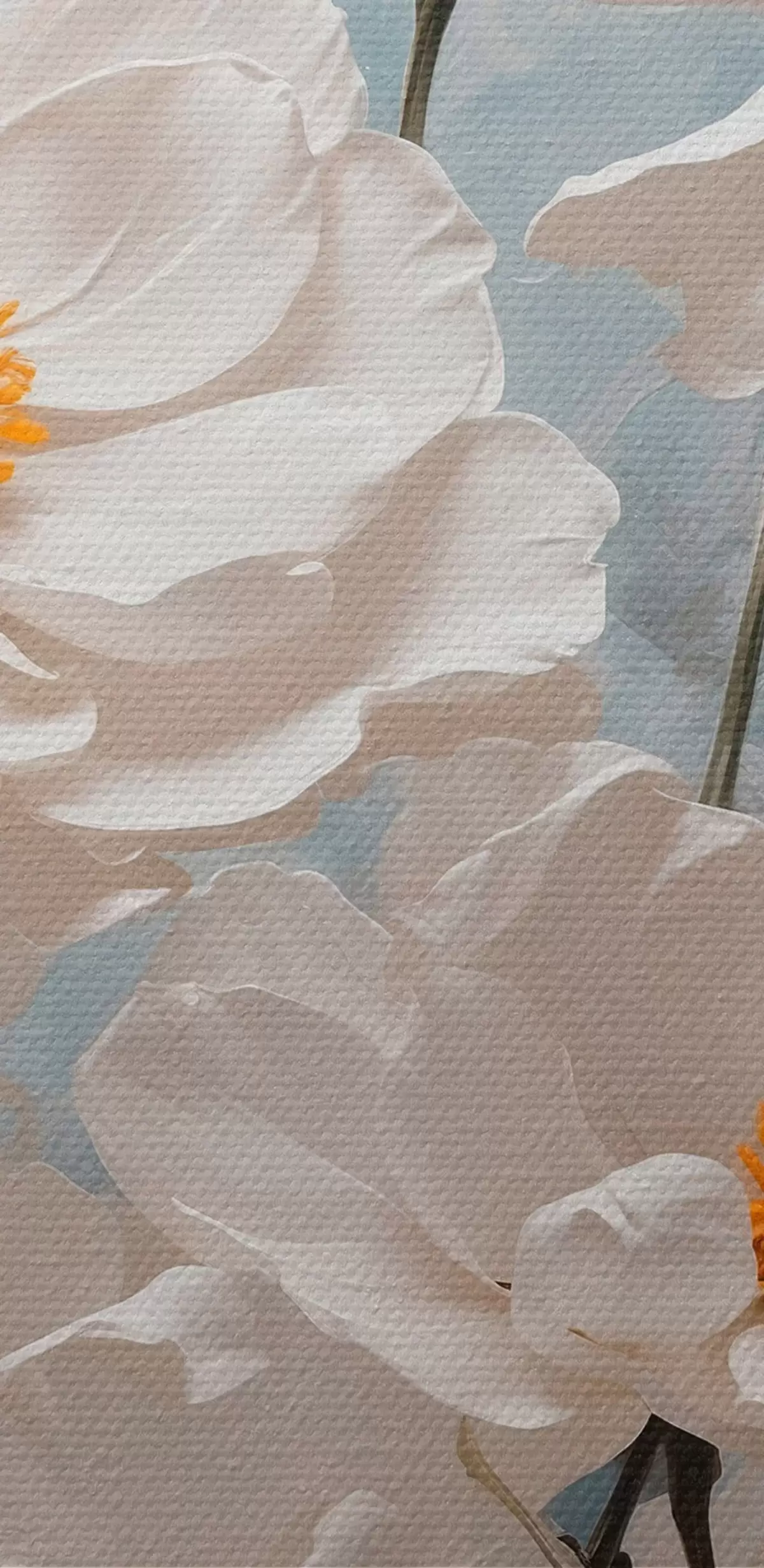 Obrázek Bílé květy na modrém a bílém olejovém pozadí Nr r41041