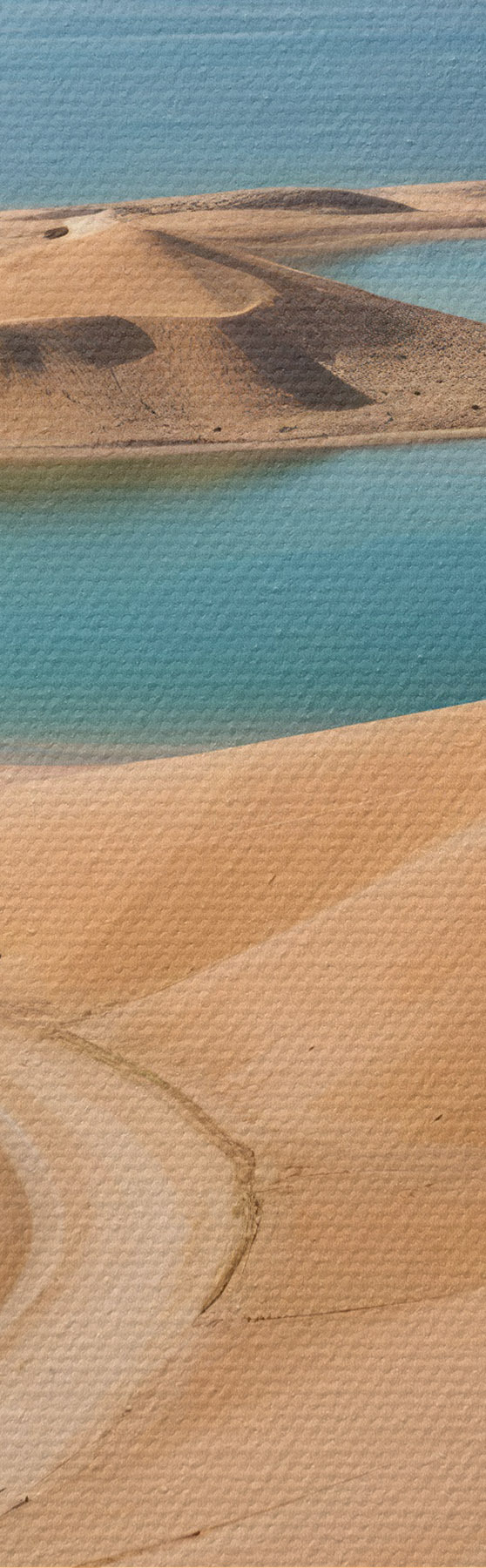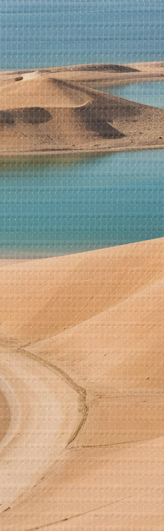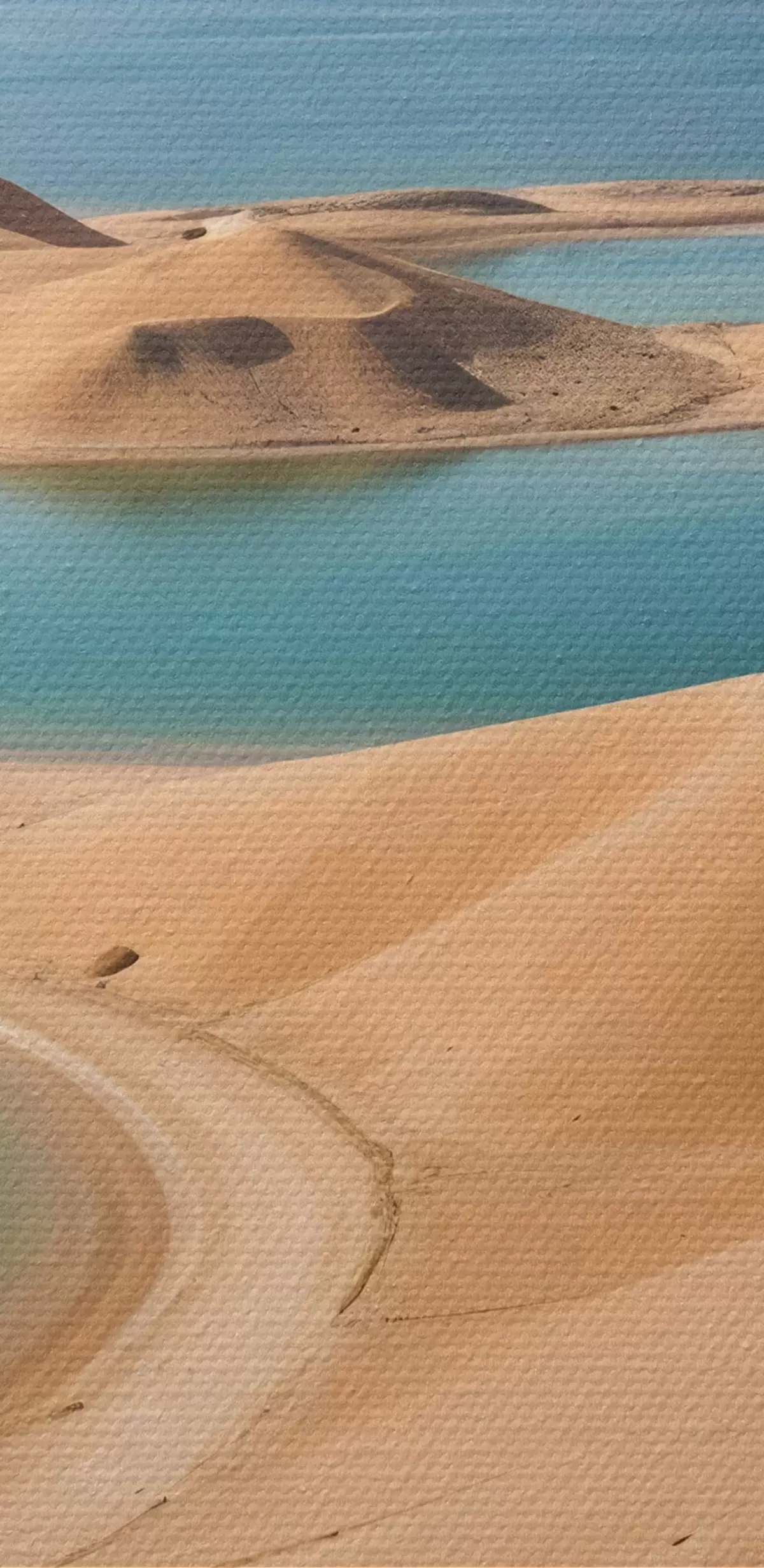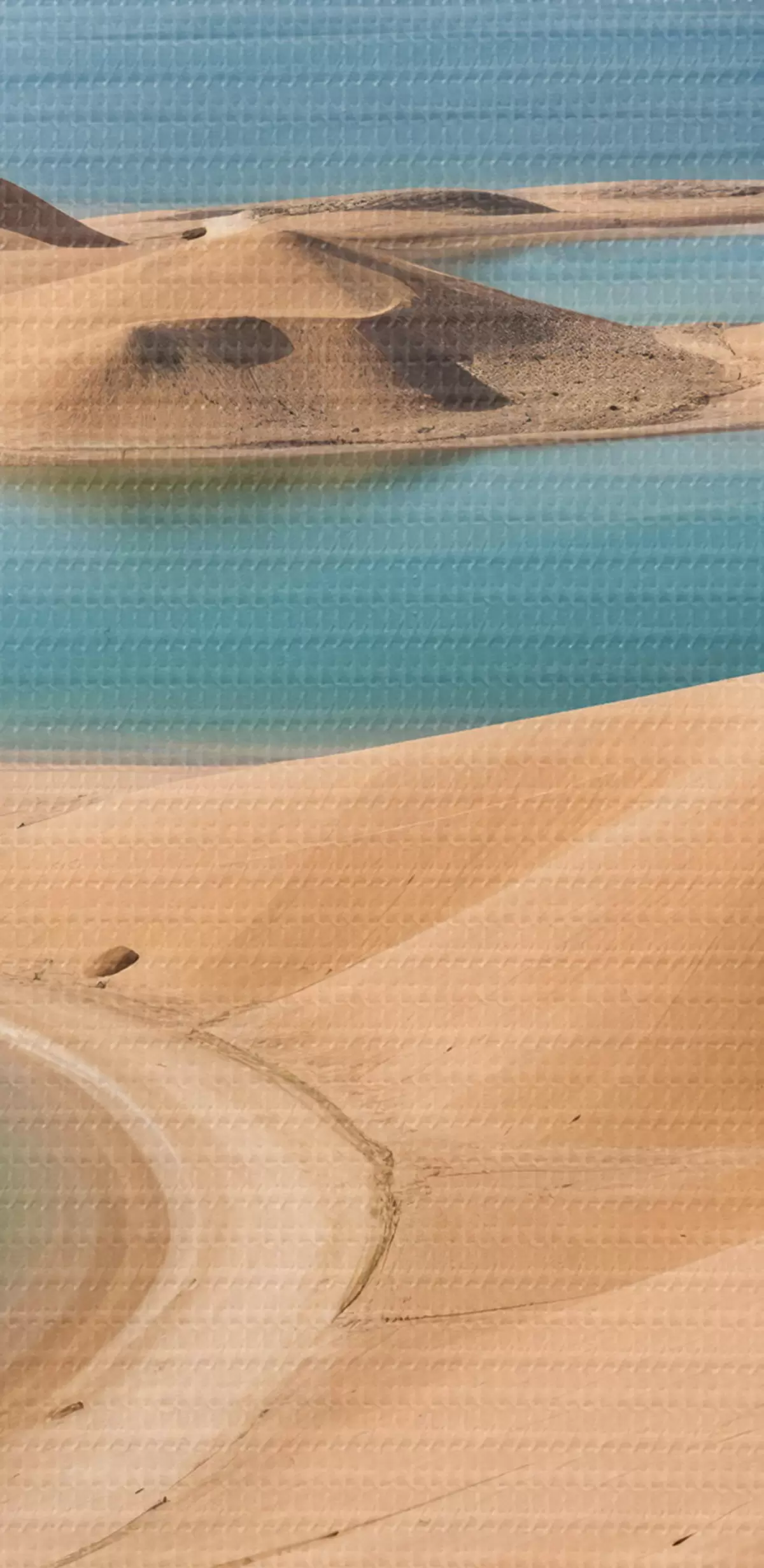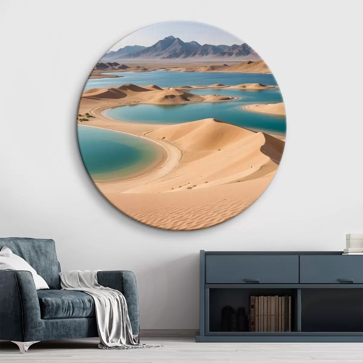 Obrázek Rozsáhlá pouštní krajina s vlnícími se dunami a tyrkysovými jezery, obklopená drsnými horami Nr r41087