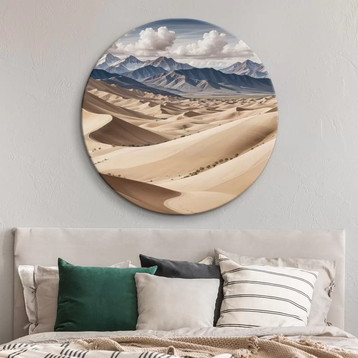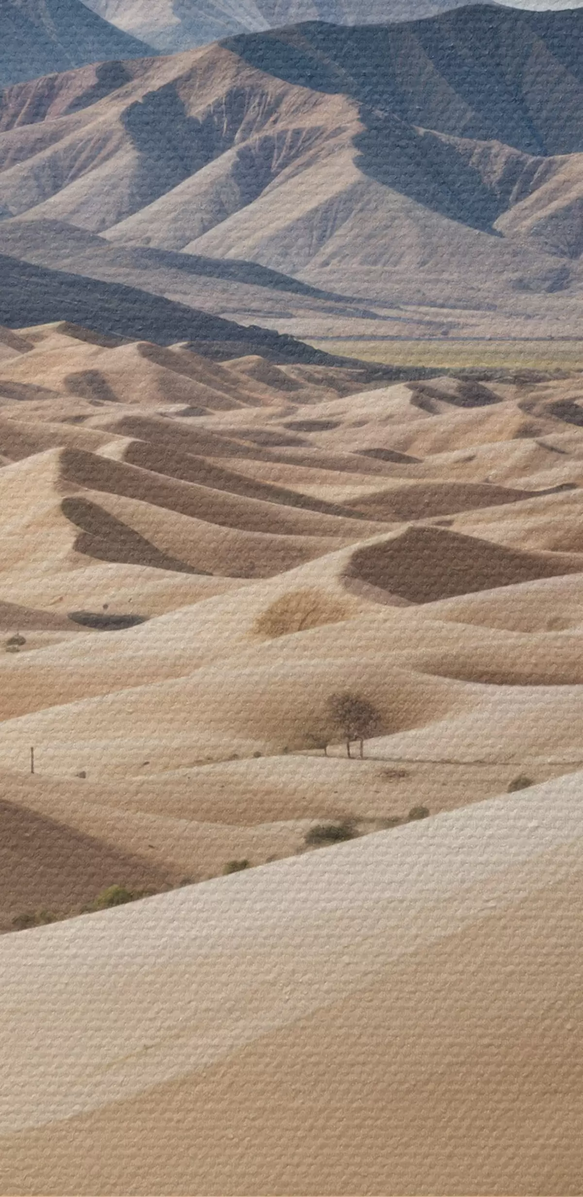 Obrázek Rozsáhlá pouštní krajina s vlnícími se dunami, rozeklanými horami v dálce a dramatickou zataženou oblohou Nr r41089