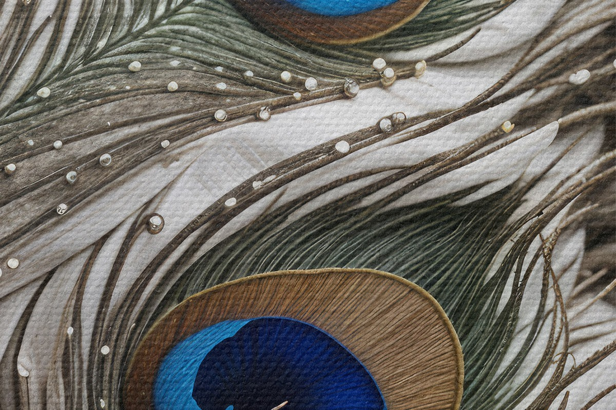 Obrázek Zářivá paví pera se složitými vzory a výraznými modrými vzory Nr r41103