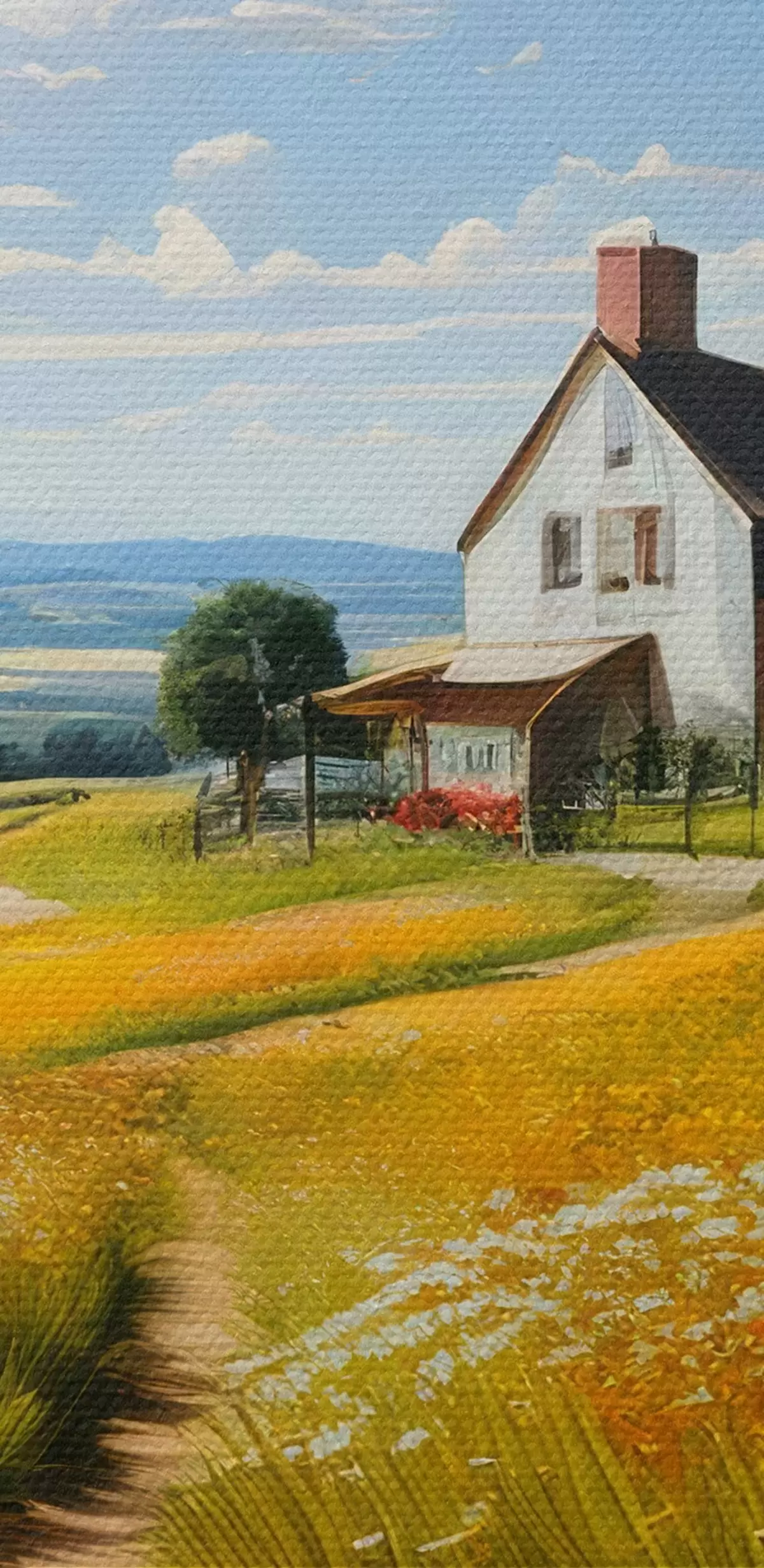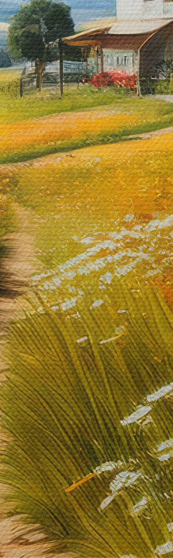 Obrázek cesta v kvetoucím poli a domě Nr r41109