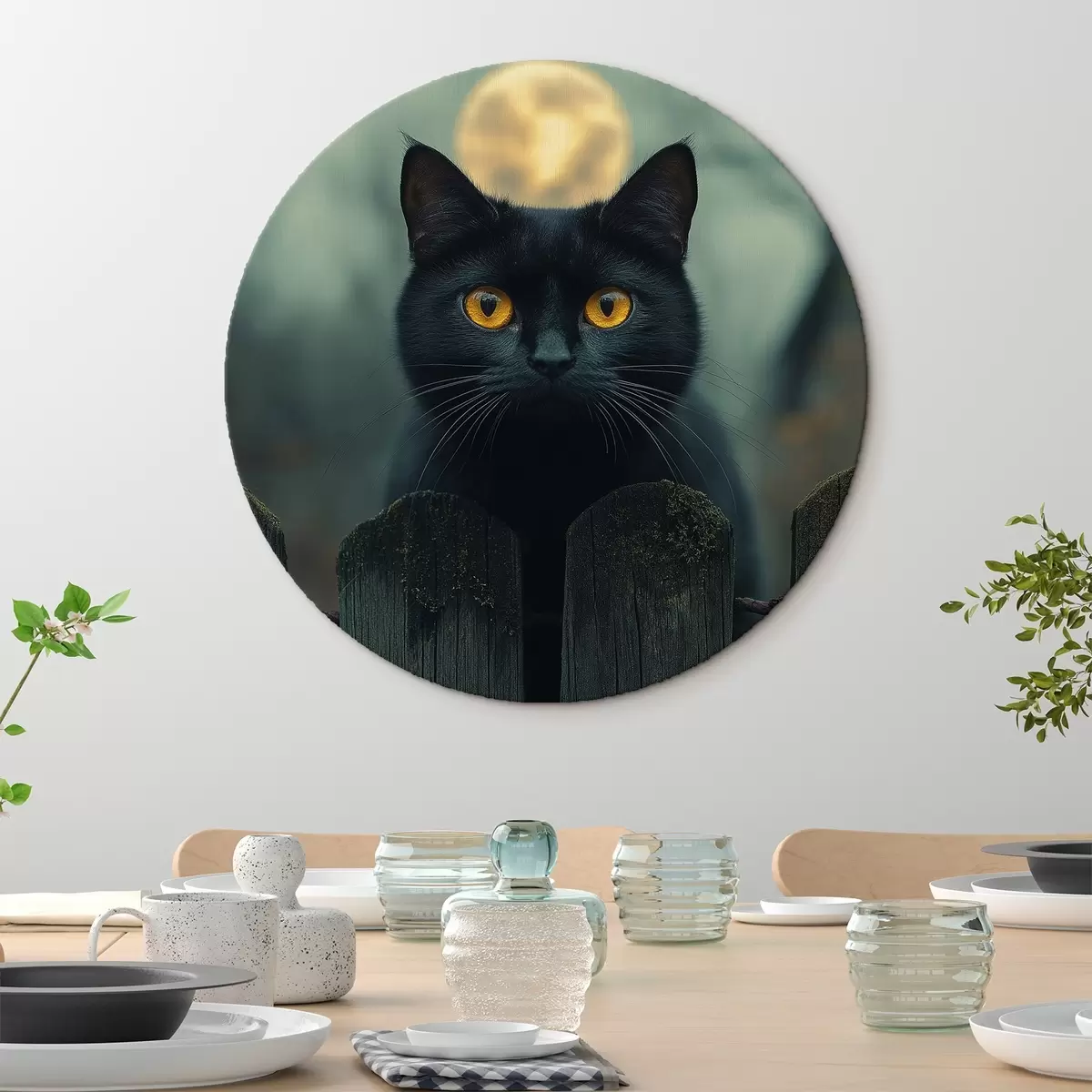 Obrázek Černá kočka a měsíc v úplňku na pozadí Nr r41123