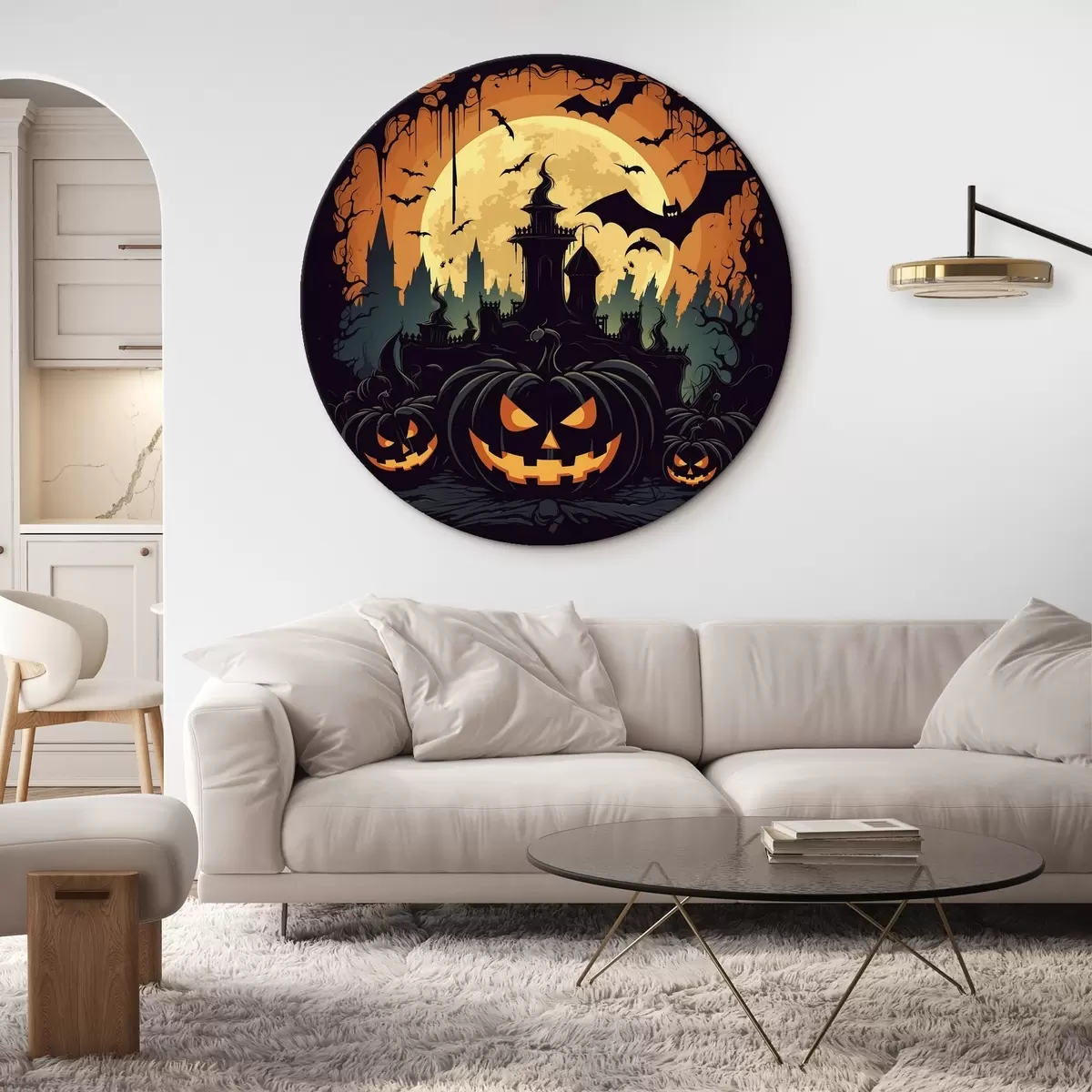 Obrázek Halloween, hrad na pozadí úplňku, netopýři a dýně Nr r41138
