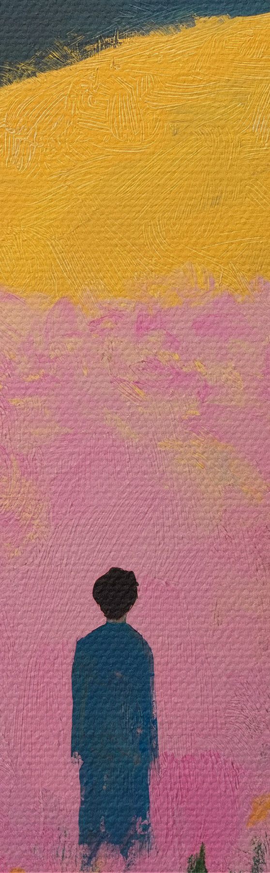 Obrázek Muž na poli s růžovými květy Nr r41164